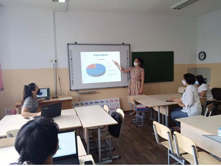 №172 мектеп—гимназиясының бастауыш сынып мұғалімдері арасында жаңа оқу жылында қашықтан оқыту процесін тиімді ұйымдастыру үшін өздерінің шеберліктерін шыңдап, цифрлық білімдерін арттыру мақсатында "Қашықтан оқытуды үйренемін" тақырыбында бір—бірімен іс—тәжірибе алмасу отырыстары мен вебинарлар өткізілді.