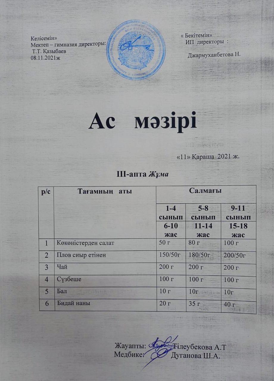 Ас мәзірі 2021