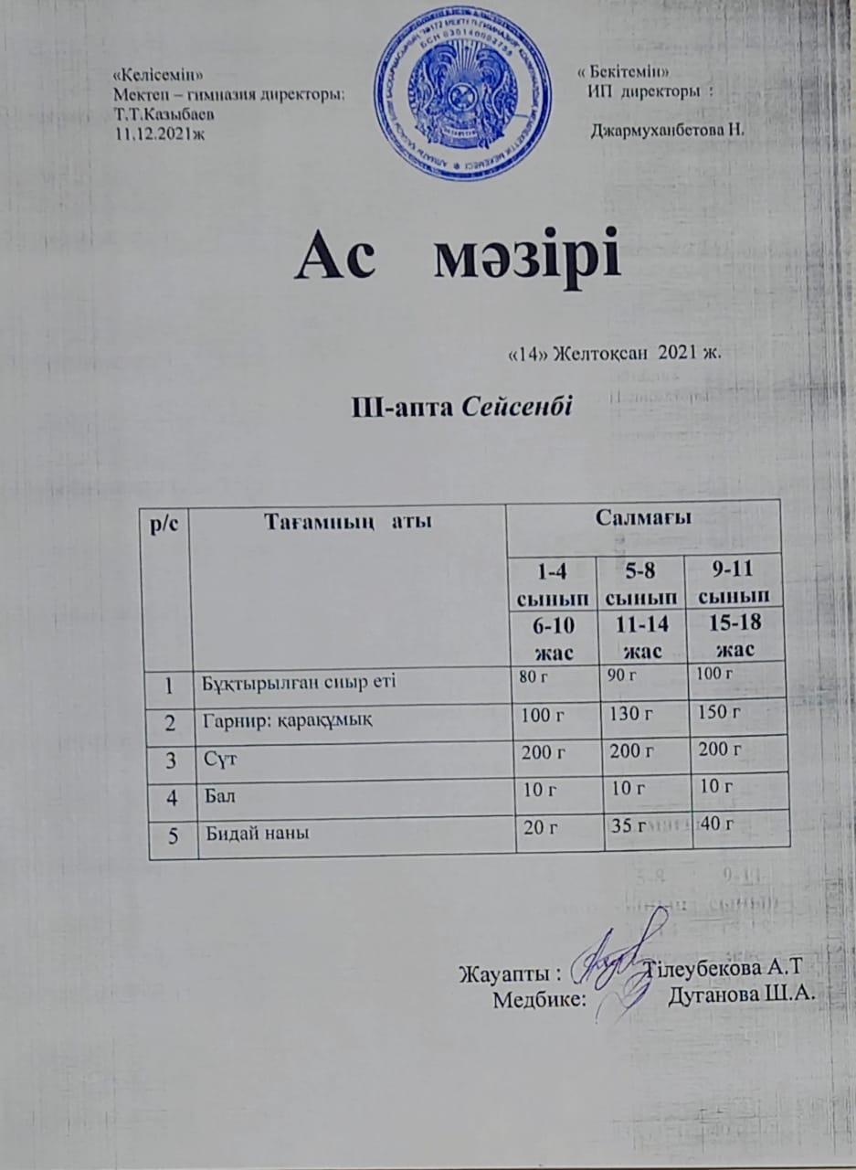 » Ас мәзірі 2021