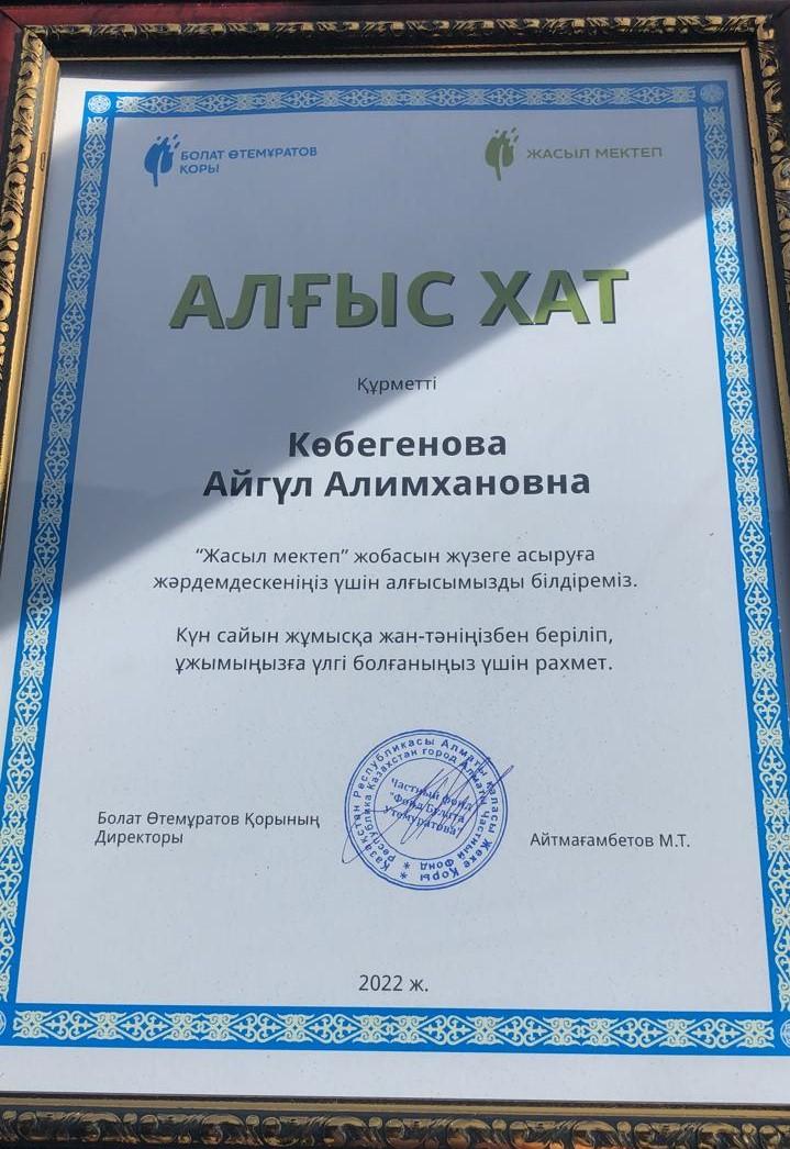 11 наурыз 2022 0 1 2 3 4 5 " ЖАСЫЛ МЕКТЕП" №172 мектеп-гимназиясының биология пән мұғалімдері Армияева Назерке мен Көбегенова Айгүл "Жасыл мектеп" жобасын жүзеге асыруға ат салысқаны үшін Болат Өтемұратов Қорынан Алғыс хат алды. Құттықтаймыз! Осы беттің QR-коды:QR-код этой страницы: