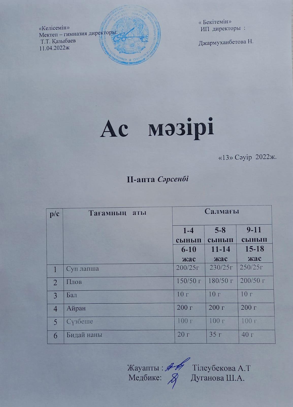 14 сәуір 2022 0 1 2 3 4 5 Ас мәзірі 2022ж №172 мектеп-гимназияның тегін ыстық тамақ ішетін оқушыларына күнделікті берілетін тағамдардың мәзірі "13"Сәуір 2022ж Осы беттің QR-коды:QR-код этой страницы: