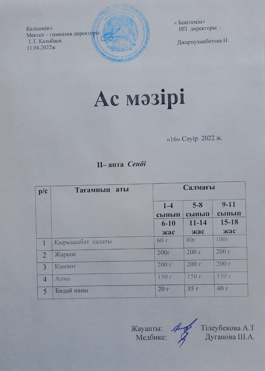16 сәуір 2022 0 1 2 3 4 5 Ас мәзірі 2022ж №172 мектеп-гимназияның тегін ыстық тамақ ішетін оқушыларына күнделікті берілетін тағамдардың мәзірі Осы беттің QR-коды:QR-код этой страницы: