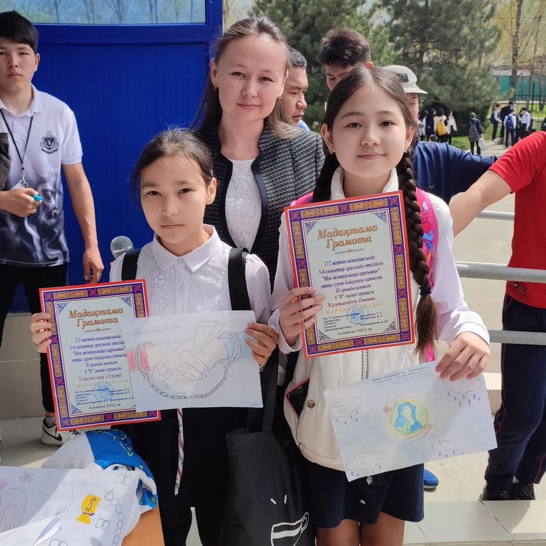 №172 мектеп-гимназиясында 5-6-сыныптар арасында "Мен жемқорлыққа қарсымын" сурет байқауы өтілді. Байқау қорытындысы бойынша Бас жүлдені 5"Ә" сынып оқушысы Замир Елдана, 1-орынды 6 "Ж" сынып оқушысы Касимбаева Мавлуда, 2-орынды 6"В" сынып оқушысы Тоқтасын Әдемі, 3-орынды 6 "В" сынып оқушысы Қуанышбек Әмина иеленді. Осындай байқауға қатынасып, ойын сурет арқылы ұтымды жеткізе білген оқушыларға қылқаламдарың кеппесін деп тілейміз!