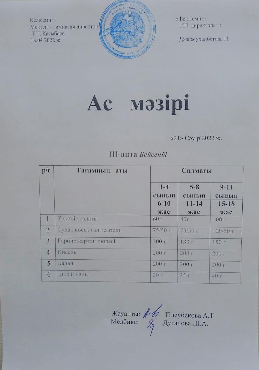 21 сәуір 2022 0 1 2 3 4 5 Ас мәзірі 2022ж №172 мектеп-гимназияның тегін ыстық тамақ ішетін оқушыларына күнделікті берілетін тағамдардың мәзірі Осы беттің QR-коды:QR-код этой страницы: