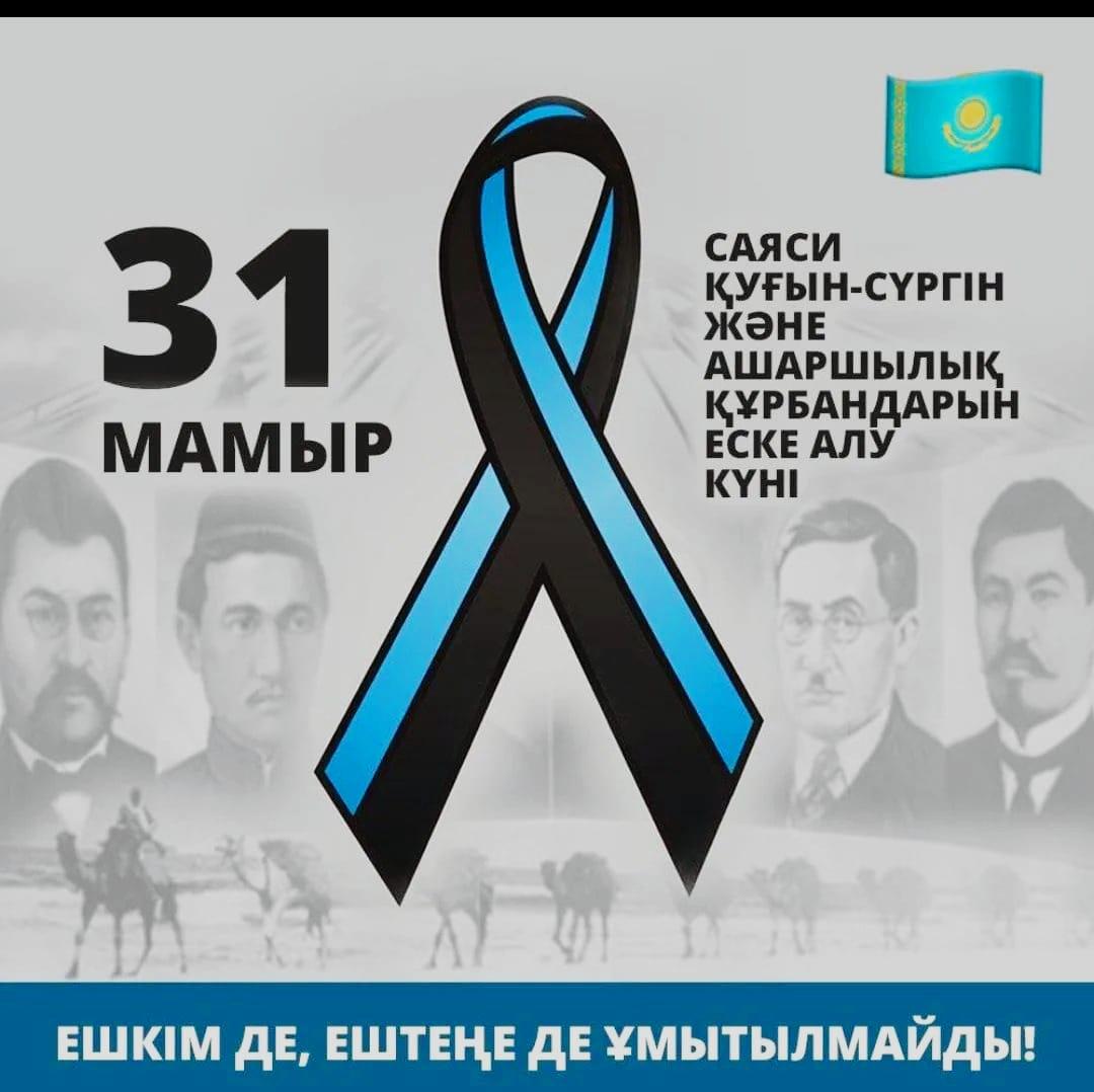 31 мамыр - саяси қуғын-сүргәне ашаршылық құрбандарын еске алу күні. 172-мектеп-гимназиясында осы күнге орай жазғы мектептегі бастауыш сынып окушыларымен тәрбиаттары өткізіліп, келешек ұрпақ үшін өз өмірлерін құрбан еткен қайсар халқымызды еске алды. Ұрпағымыз бұл оқиғалардан үлкен сабақ алып, болашақта қайталануына жол бермеуі тиіс. Себебі халықтың бірлігі, тұтастығы және тәуелсіздігінен қасиетті де қымбат ештеңе жоқ.