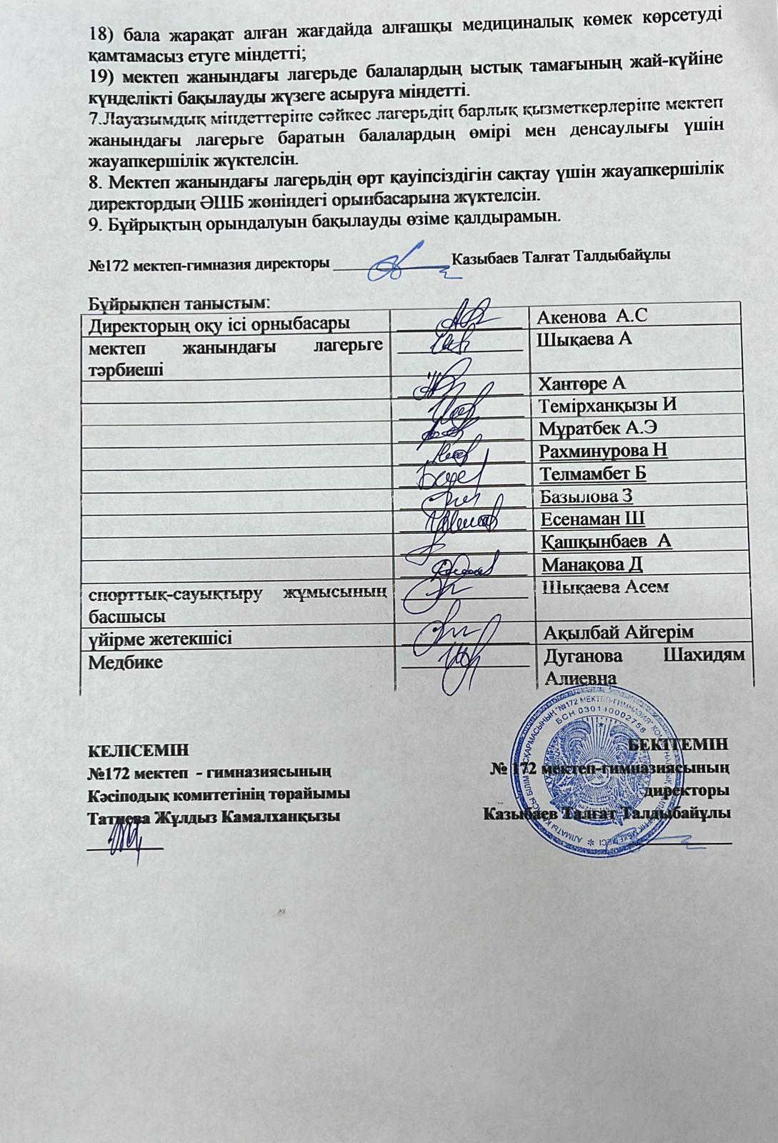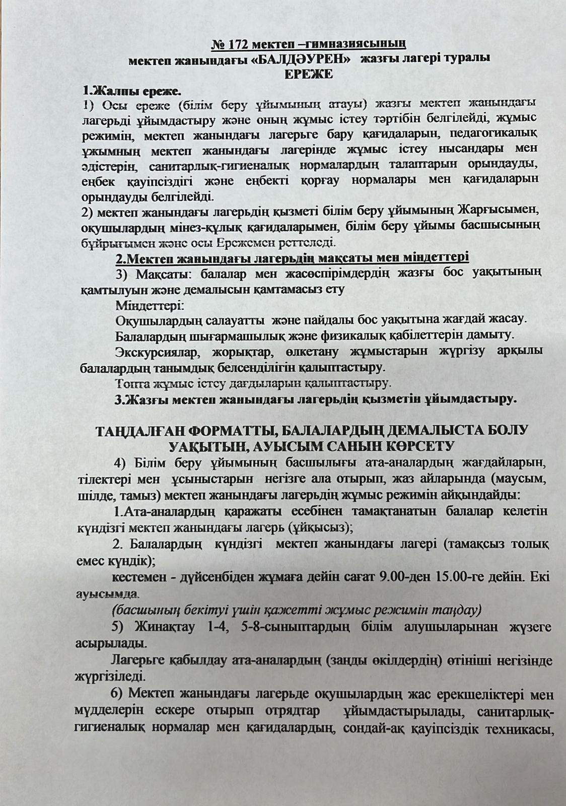 #172 мектеп гимназиясының мектеп жанындағы БАЛДӘУРЕН жазғы лагері туралы ЕРЕЖЕ