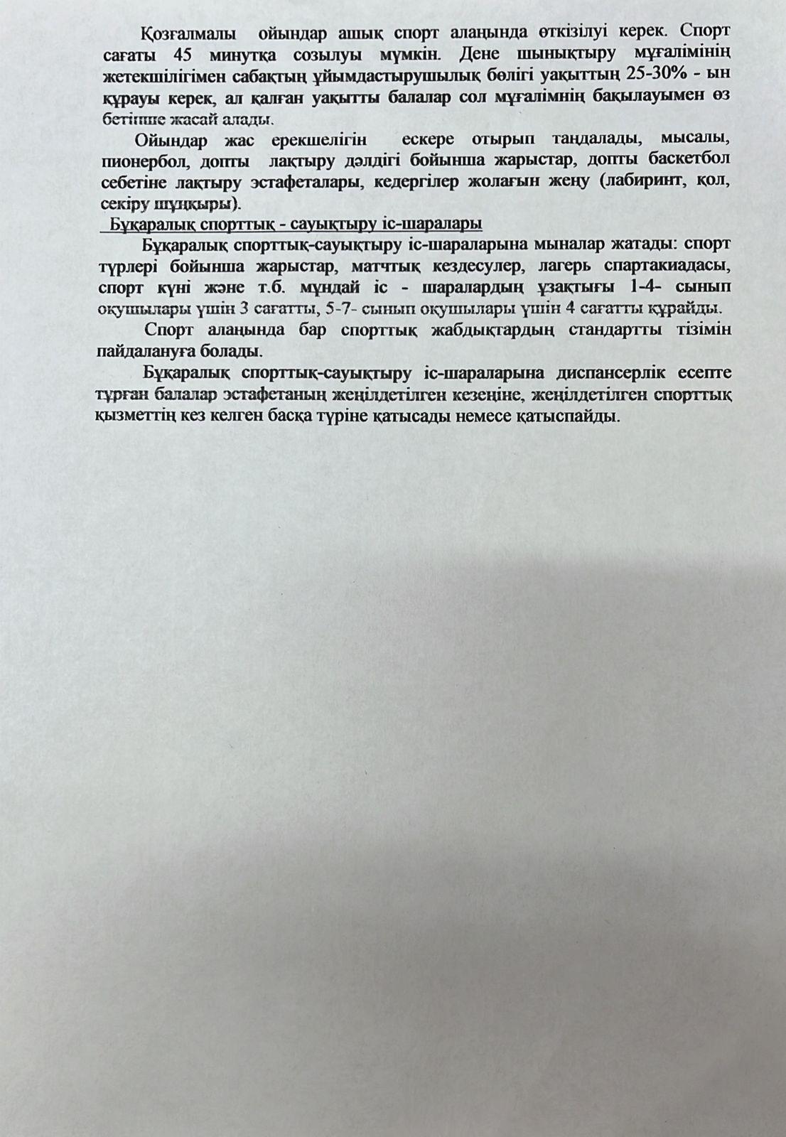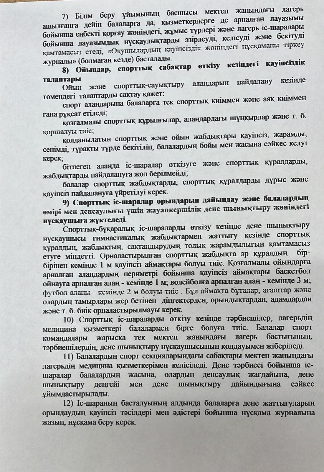 Күндізгі болу нысанымен жазғы мектеп жанындағы лагерь жағдайында балалармен дене шынықтыру-сауықтыру жұмыстарын ұйымдастыру бойынша