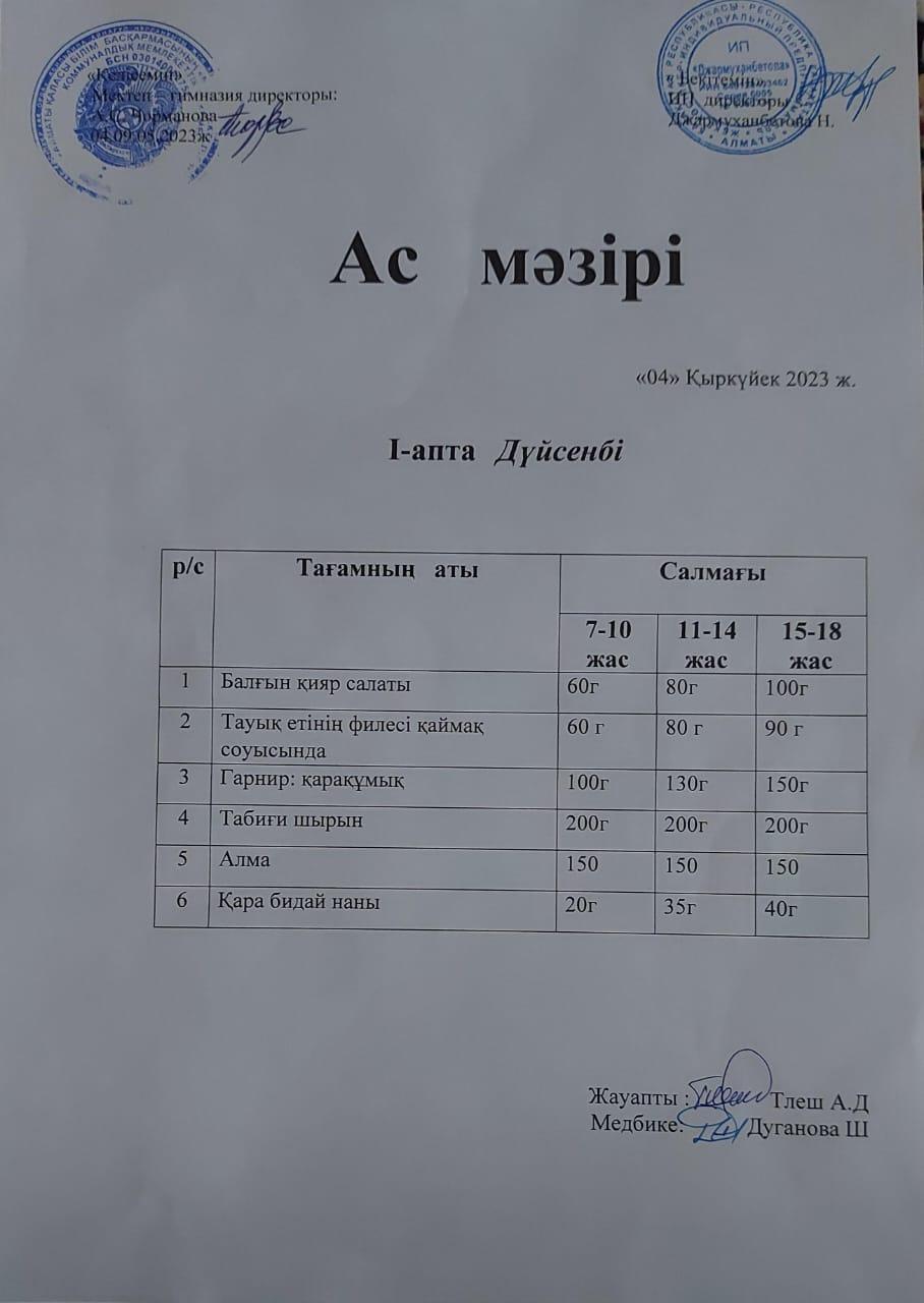 04 қыркүйек 2023 0 1 2 3 4 5 Ас мәзірі 2023 №172 мектеп-гимназиясының 04.09.2023 ж күні тегін ыстық тамақ ішетін оқушыларына берілетін тағамдардың мәзірі Осы беттің QR-коды:QR-код этой страницы: