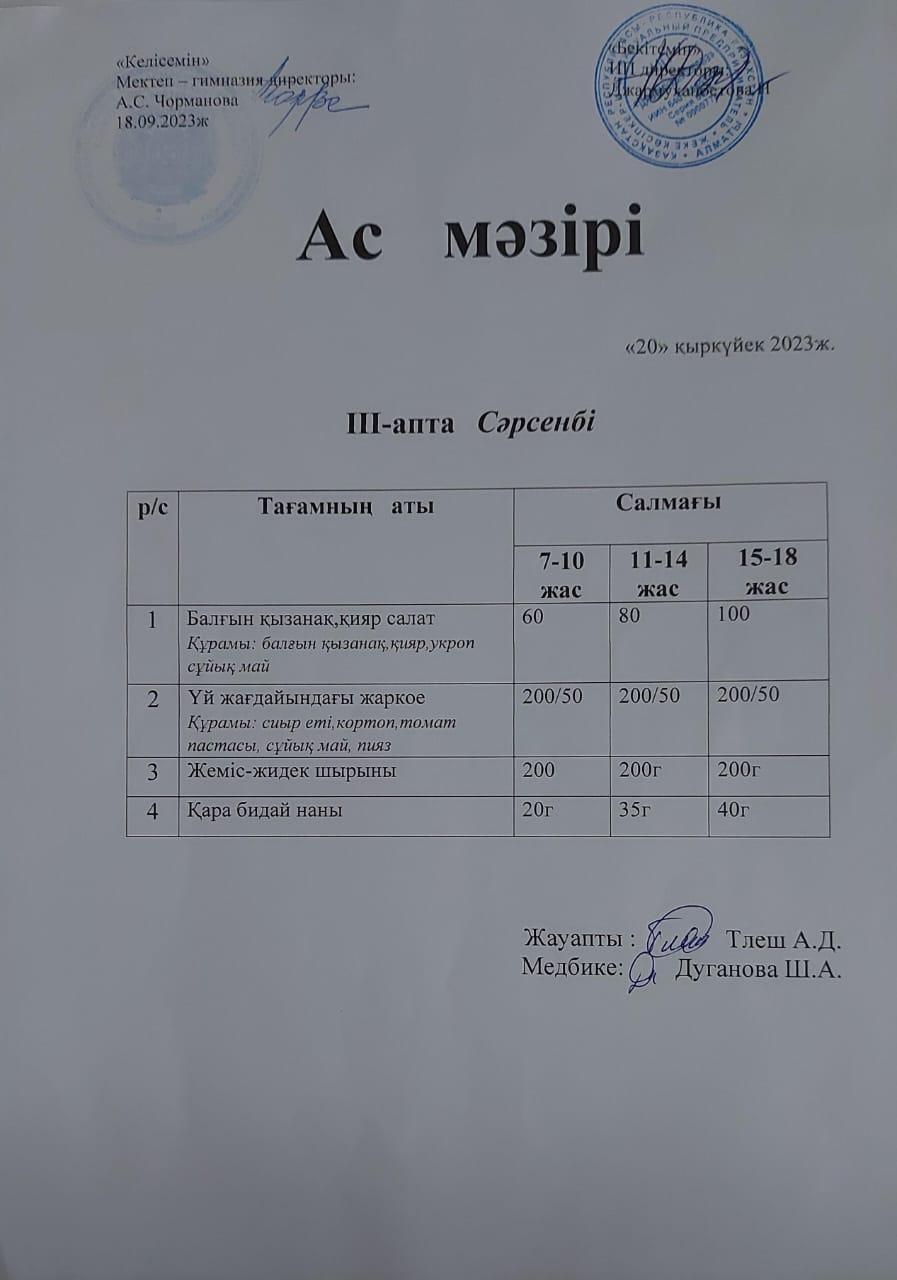 20 қыркүйек 2023 0 1 2 3 4 5 Ас мәзірі 20.09.2023 №172 мектеп-гимназиясының 20.09.2023 ж күні тегін ыстық тамақ ішетін оқушыларына берілетін тағамдардың мәзірі Осы беттің QR-коды:QR-код этой страницы: