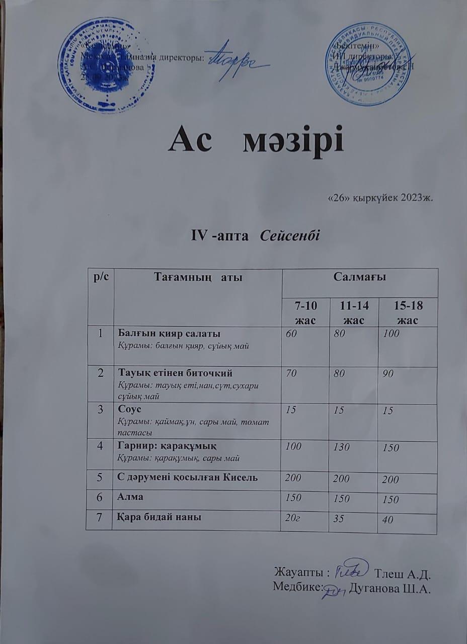 26 қыркүйек 2023 0 1 2 3 4 5 Ас мәзір 26.09.2023ж №172 мектеп-гимназиясының 26.09.2023 ж күні тегін ыстық тамақ ішетін оқушыларына берілетін тағамдардың мәзірі Осы беттің QR-коды:QR-код этой страницы: