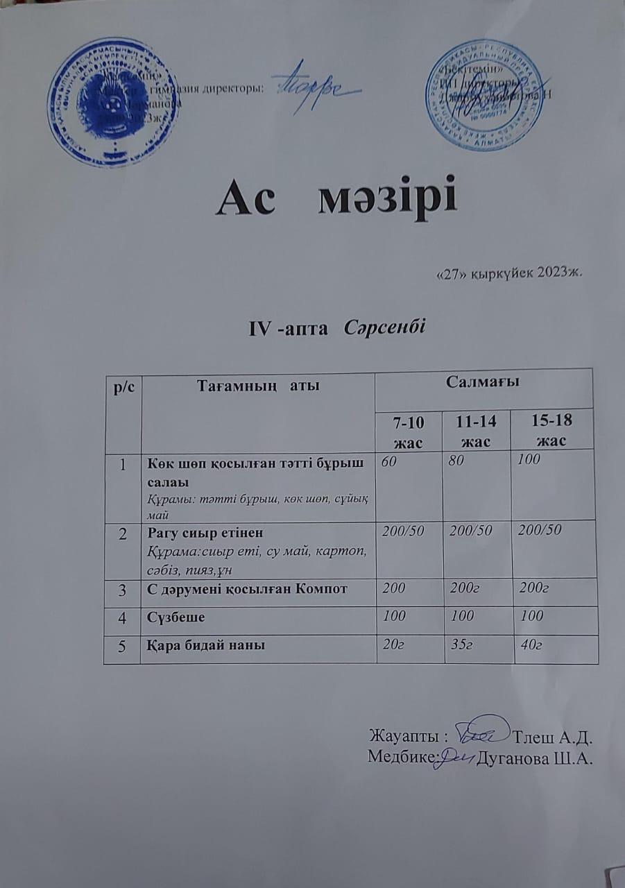 27 қыркүйек 2023 0 1 2 3 4 5 Ас мәзірі 27.09.2023ж №172 мектеп-гимназиясының 27.09.2023 ж күні тегін ыстық тамақ ішетін оқушыларына берілетін тағамдардың мәзірі Осы беттің QR-коды:QR-код этой страницы: