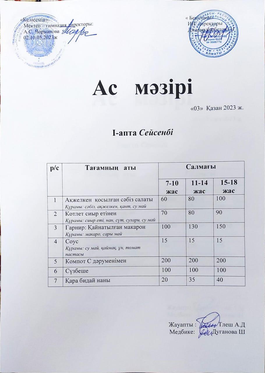 03 қазан 2023 0 1 2 3 4 5 Ас мәзірі 03.10.2023ж №172 мектеп-гимназиясының 03.10.2023 ж күні тегін ыстық тамақ ішетін оқушыларына берілетін тағамдардың мәзірі Осы беттің QR-коды:QR-код этой страницы: