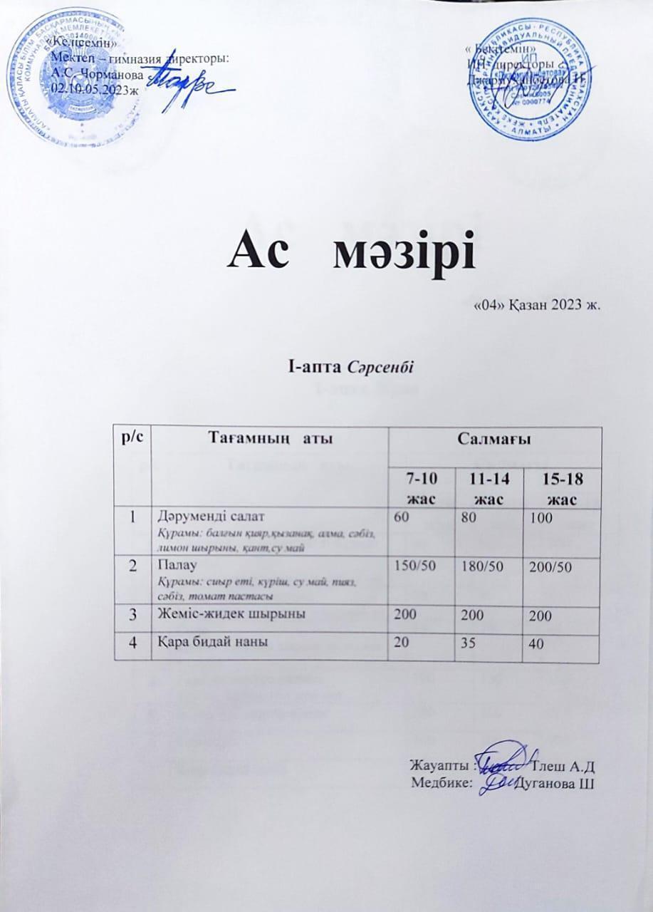 04 қазан 2023 0 1 2 3 4 5 Ас мәзірі 2023ж №172 мектеп-гимназиясының 04.10.2023 ж күні тегін ыстық тамақ ішетін оқушыларына берілетін тағамдардың мәзірі Осы беттің QR-коды:QR-код этой страницы:
