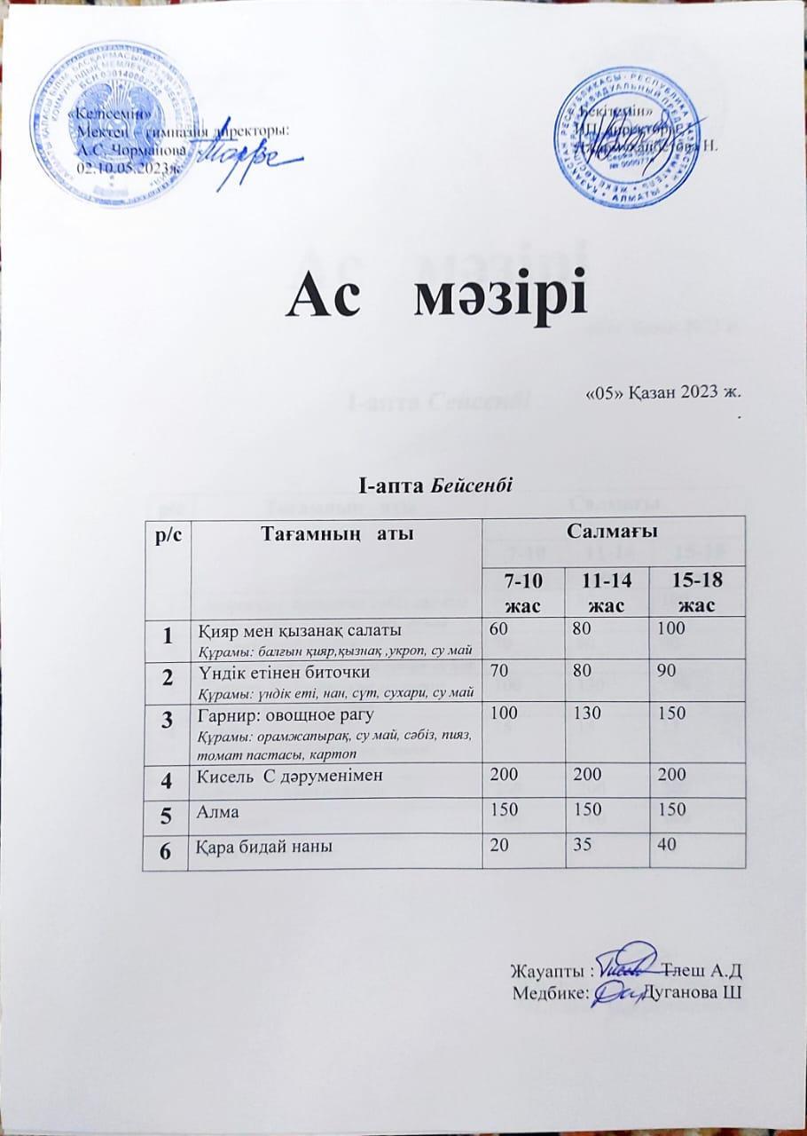 05 қазан 2023 0 1 2 3 4 5 Ас мәзірі 05.10.2023ж №172 мектеп-гимназиясының 05.10.2023 ж күні тегін ыстық тамақ ішетін оқушыларына берілетін тағамдардың мәзірі Осы беттің QR-коды:QR-код этой страницы: