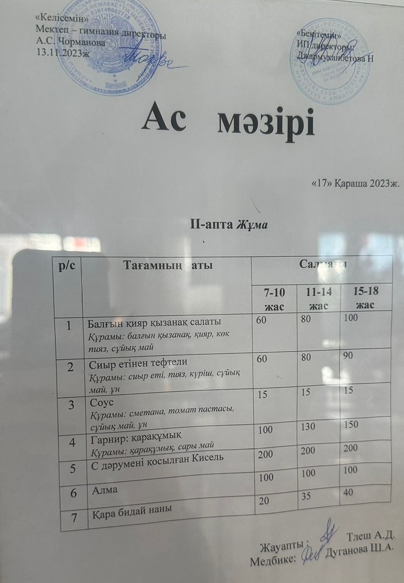 17 қараша 2023 0 1 2 3 4 5 Ас мәзірі 17.11.2023ж №172 мектеп-гимназиясының 17.11.2023 ж күні тегін ыстық тамақ ішетін оқушыларына берілетін тағамдардың мәзірі Осы беттің QR-коды:QR-код этой страницы: