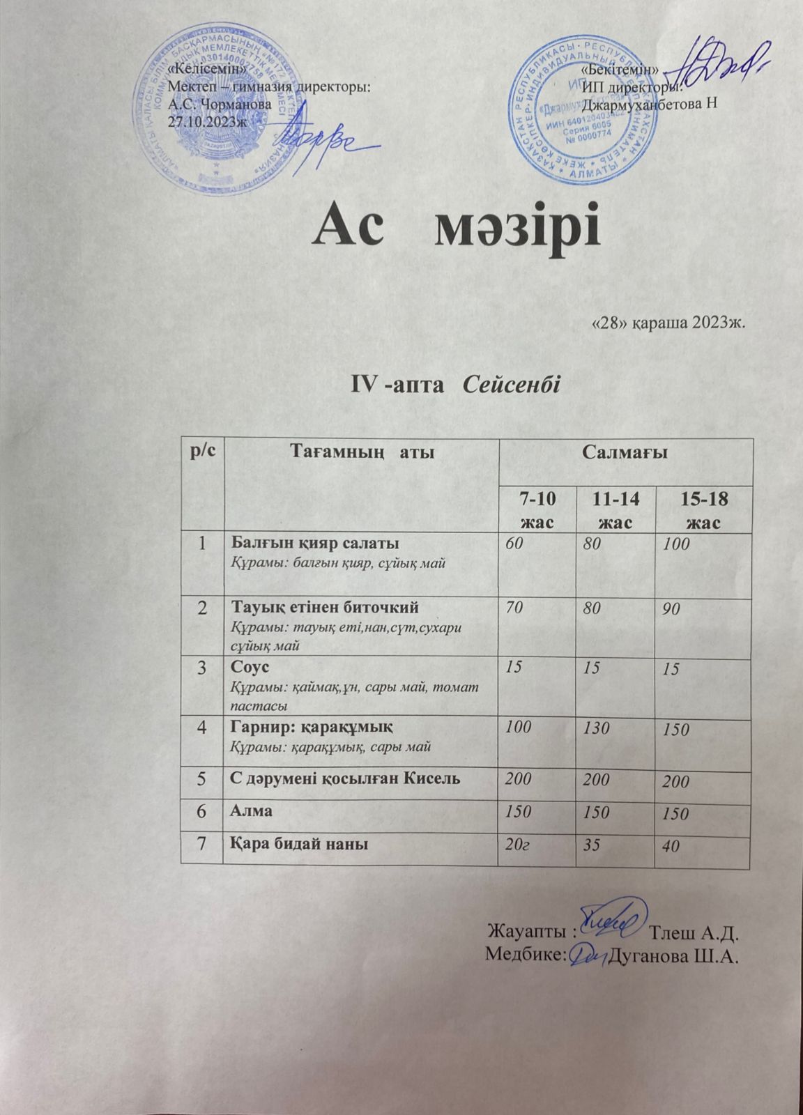 28 қараша 2023 0 1 2 3 4 5 Ас мәзірі 28.11.2023ж №172 мектеп-гимназиясының 28.11.2023 ж күні тегін ыстық тамақ ішетін оқушыларына берілетін тағамдардың мәзірі Осы беттің QR-коды:QR-код этой страницы: