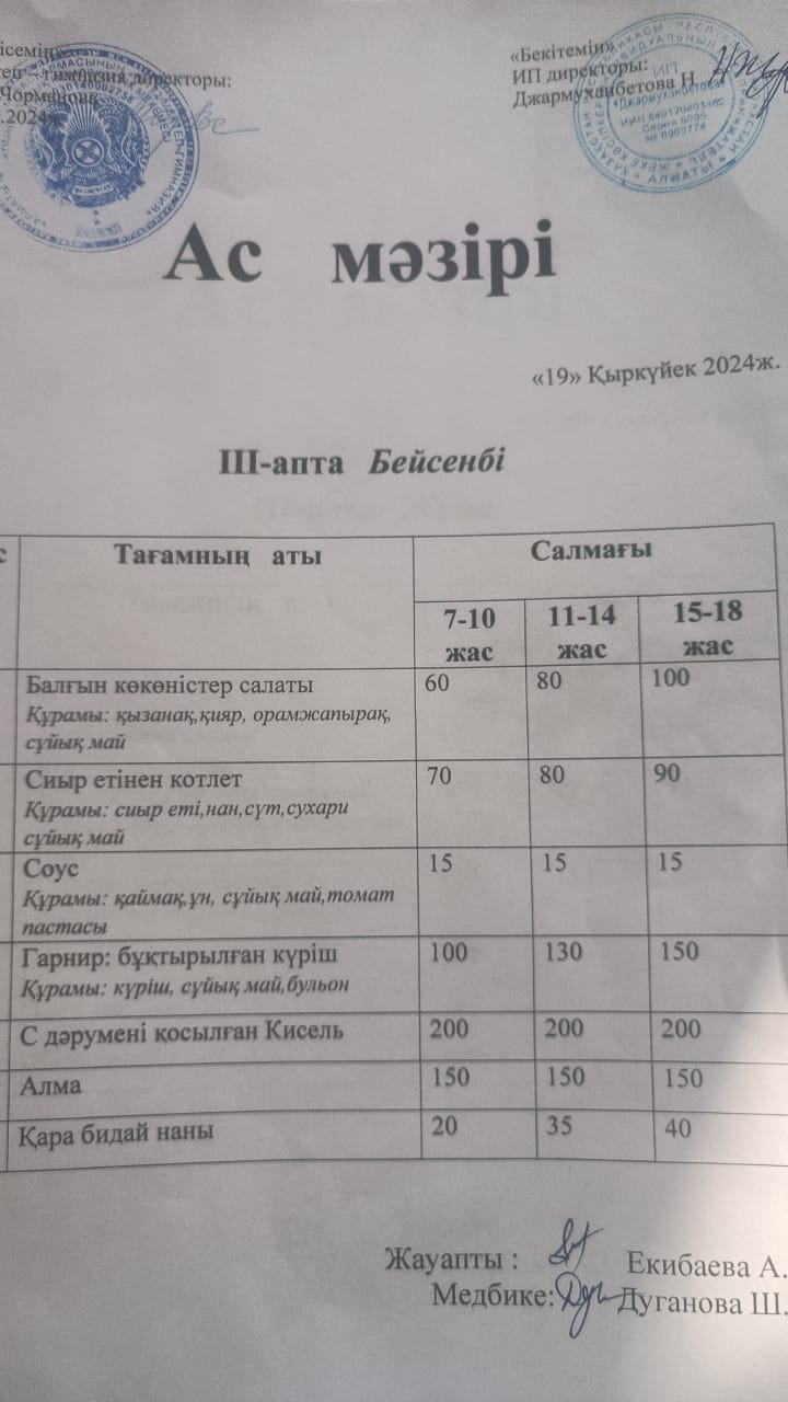 19 қыркүйек 2024 0 1 2 3 4 5 Ас мәзірі 19.09.2024ж №172 мектеп-гимназиясының 19.09.2024 күні тегін ыстық тамақ ішетін оқушыларына берілетін тағамдардың мәзірі Осы беттің QR-коды:QR-код этой страницы: