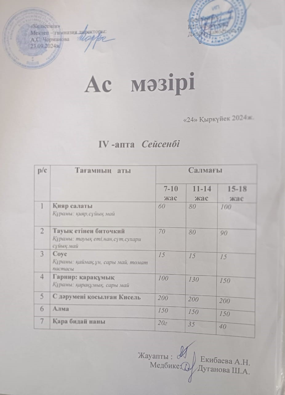 24 қыркүйек 2024 0 1 2 3 4 5 Ас мәзірі 24.09.2024ж №172 мектеп-гимназиясының тегін ыстық тамақ ішетін оқушыларына арналған ас мәзірі Осы беттің QR-коды:QR-код этой страницы: