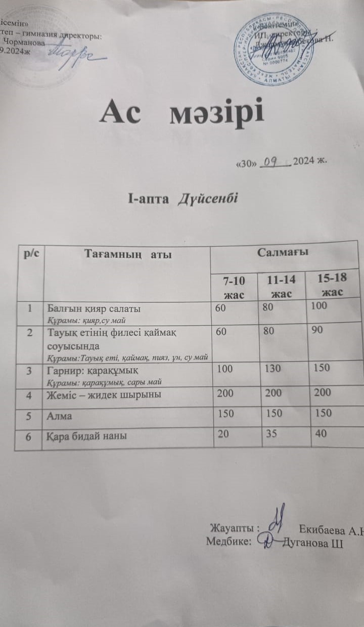 30 қыркүйек 2024 0 1 2 3 4 5 Ас мәзірі 30.09.2024ж №172 мектеп-гимназиясының тегін ыстық тамақ ішетін оқушыларына арналған ас мәзірі. Осы беттің QR-коды:QR-код этой страницы: