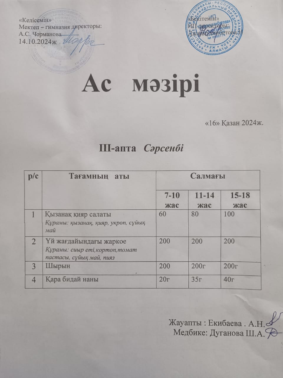 16 қазан 2024 0 1 2 3 4 5 АС МӘЗІРІ 16.10.2024ж №172 мектеп-гимназиясының тегін ыстық тамақ ішетін оқушыларына арналған ас мәзірі. Осы беттің QR-коды:QR-код этой страницы: