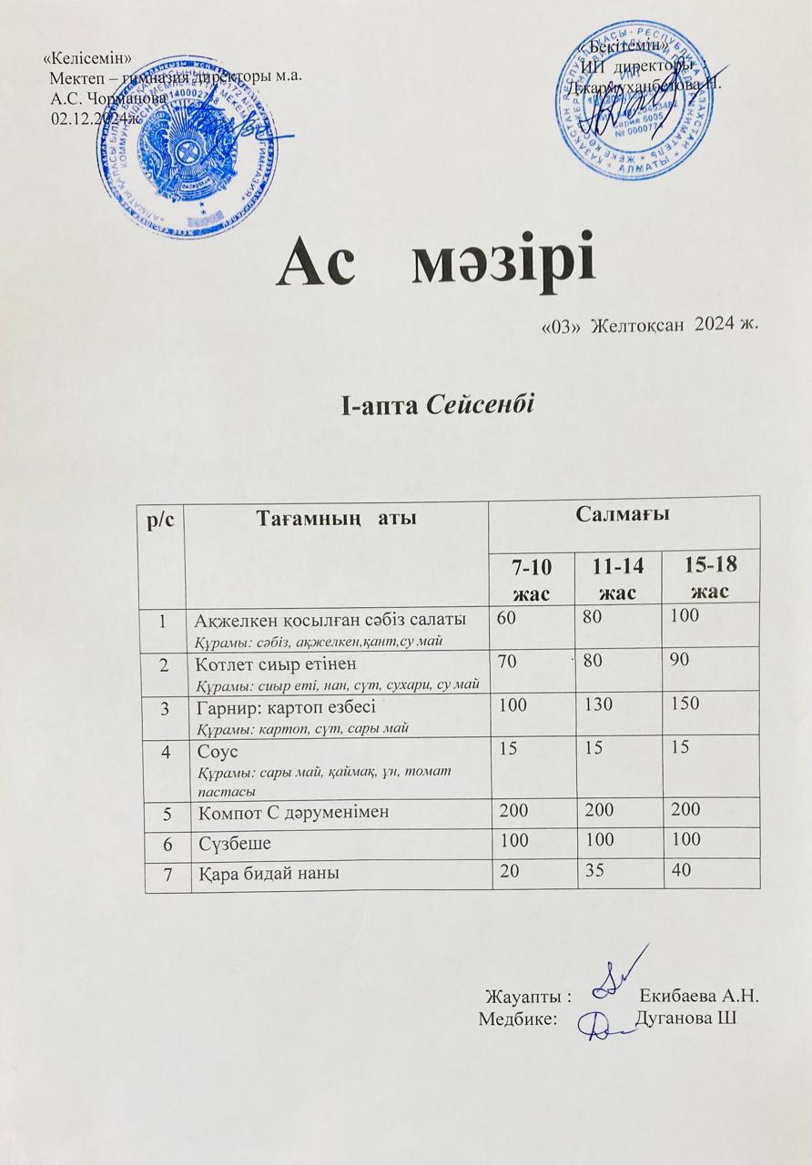 03 желтоқсан 2024 0 1 2 3 4 5 Ас мәзірі 03.12.2024ж №172 мектеп-гимназиясының тегін ыстық тамақ ішетін оқушыларына арналған ас мәзірі Осы беттің QR-коды:QR-код этой страницы: