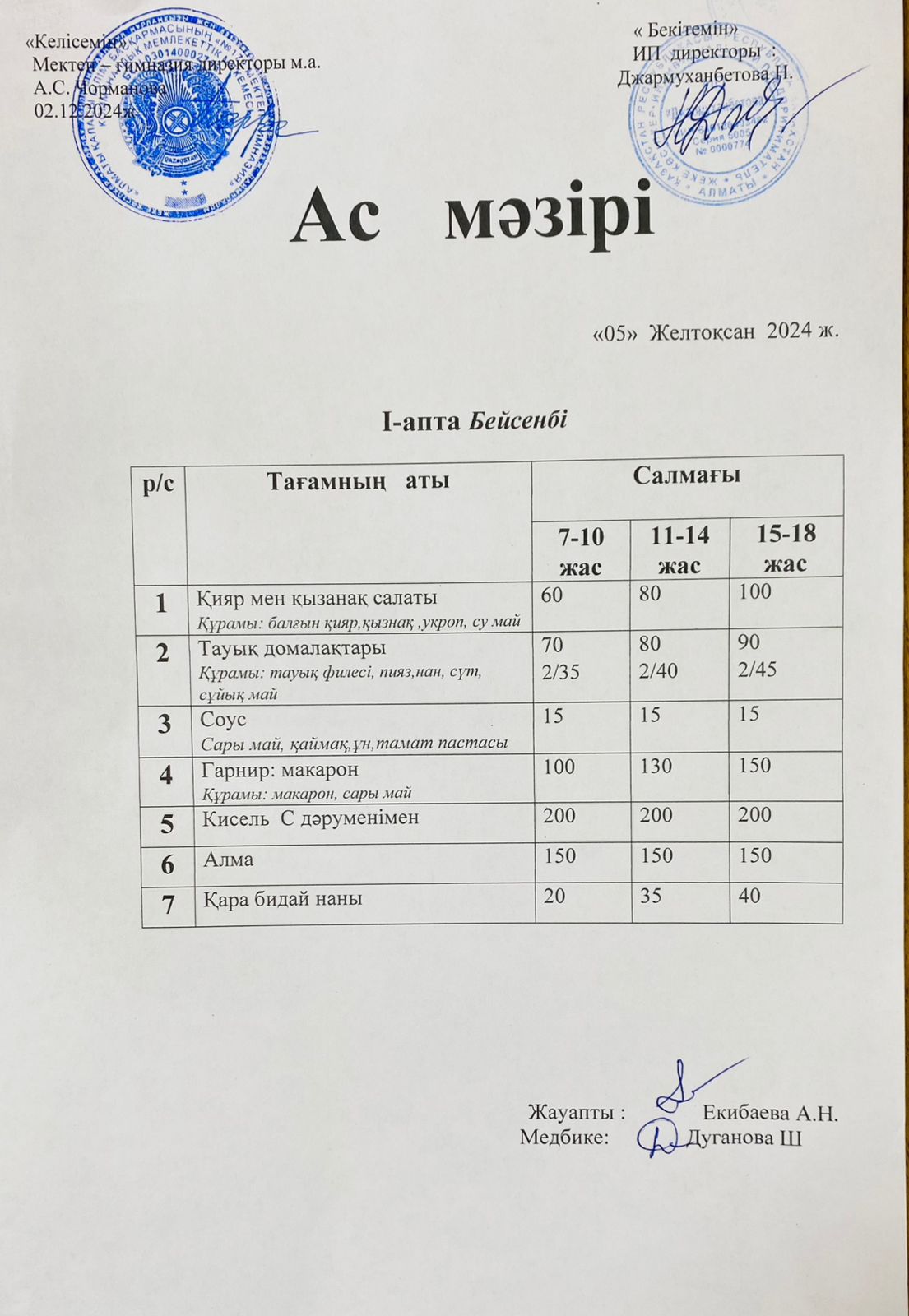 05 желтоқсан 2024 0 1 2 3 4 5 Ас мәзірі 05.12.2024ж №172 мектеп-гимназиясының тегін ыстық тамақ ішетін оқушыларына арналған ас мәзірі Осы беттің QR-коды:QR-код этой страницы: