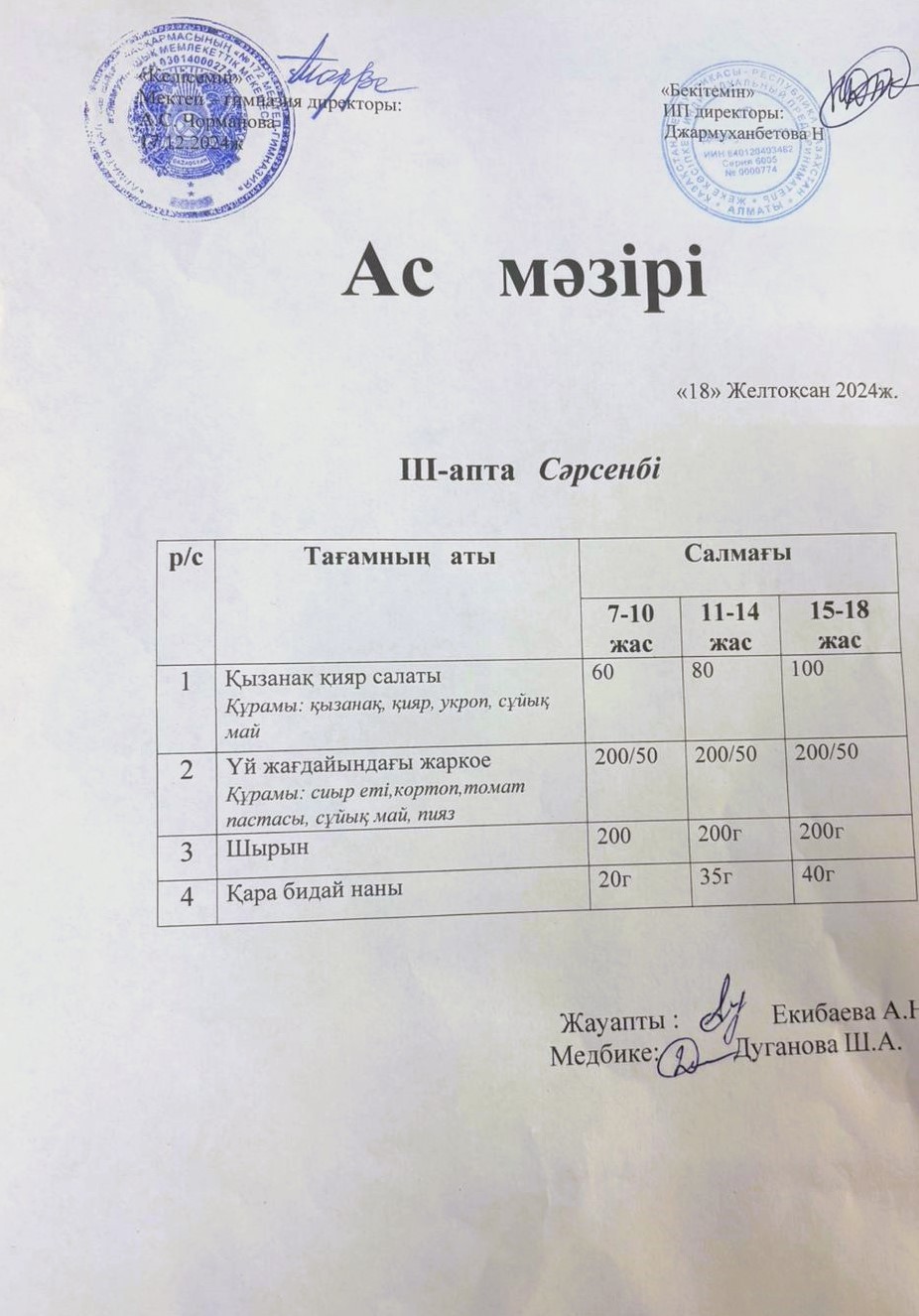 19 желтоқсан 2024 0 1 2 3 4 5 Ас мәзірі 19.12.2024ж №172 мектеп-гимназиясының тегін ыстық тамақ ішетін оқушыларына арналған ас мәзірі Осы беттің QR-коды:QR-код этой страницы: