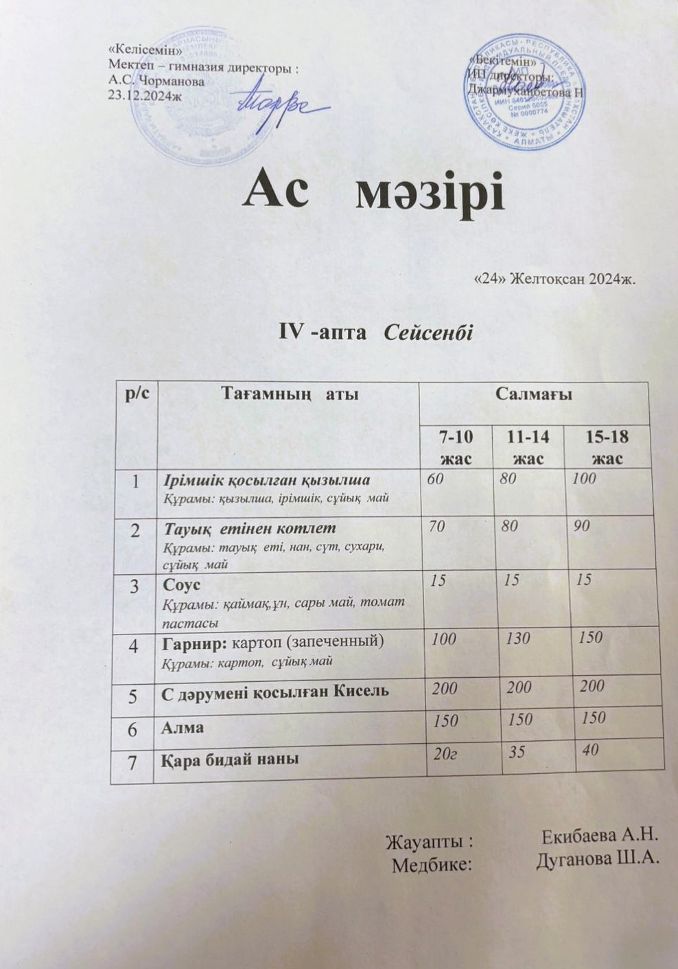 24 желтоқсан 2024 0 1 2 3 4 5 "Ас мәзірі" 24.12.2024ж №172 мектеп-гимназиясының тегін ыстық тамақ ішетін оқушыларына арналған ас мәзірі Осы беттің QR-коды:QR-код этой страницы: