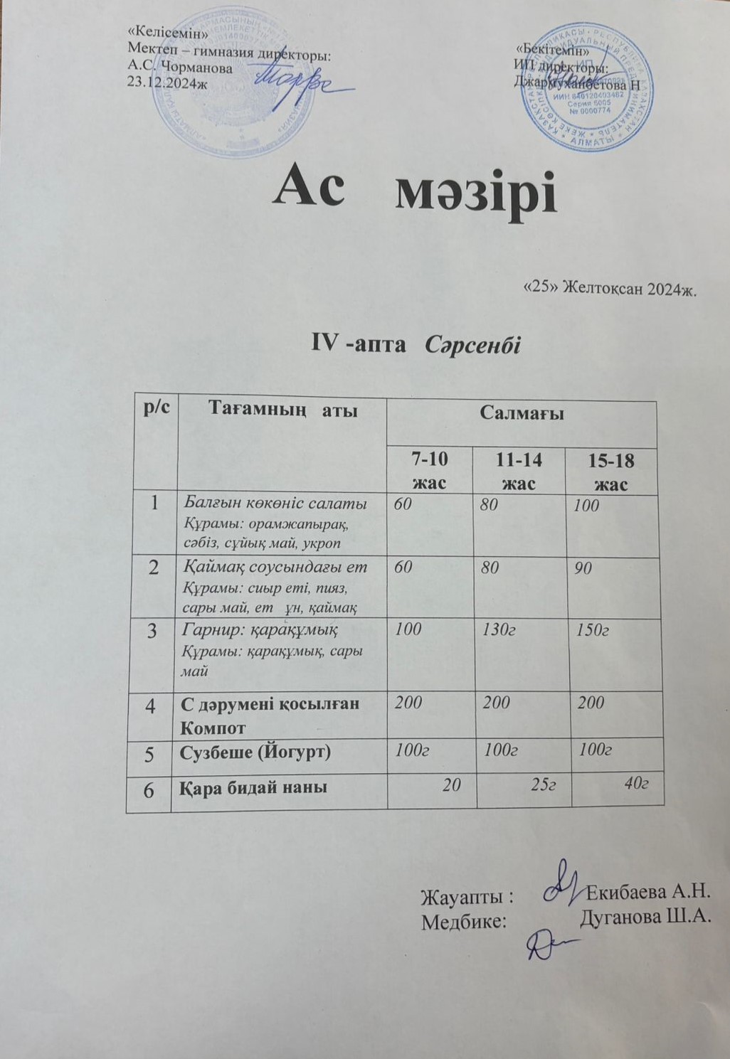25 желтоқсан 2024 0 1 2 3 4 5 Ас мәзірі 25.12.2024ж №172 мектеп-гимназиясының тегін ыстық тамақ ішетін оқушыларына арналған ас мәзірі Осы беттің QR-коды:QR-код этой страницы: