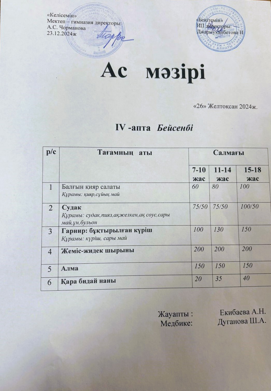 26 желтоқсан 2024 0 1 2 3 4 5 Ас мәзірі 27.12.2024ж №172 мектеп-гимназиясының тегін ыстық тамақ ішетін оқушыларына арналған ас мәзірі Осы беттің QR-коды:QR-код этой страницы: