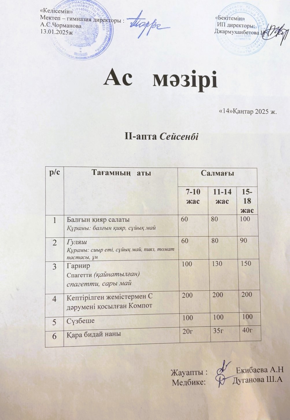 14 қаңтар 2025 0 1 2 3 4 5 Ас мәзірі 14.01.2025ж №172 мектеп-гимназиясының тегін ыстық тамақ ішетін оқушыларына арналған ас мәзірі Осы беттің QR-коды:QR-код этой страницы: