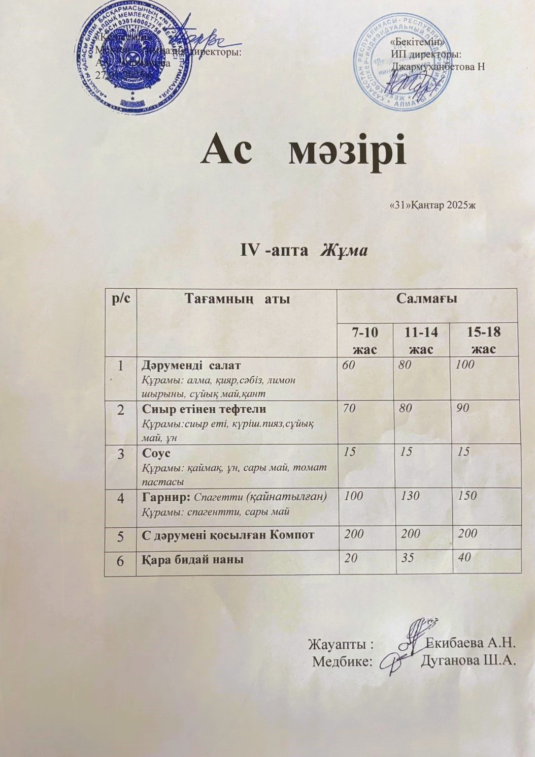 31 қаңтар 2025 0 1 2 3 4 5 Ас мәзірі 31.01.2025ж №172 мектеп-гимназиясының тегін ыстық тамақ ішетін оқушыларына арналған ас мәзірі Осы беттің QR-коды:QR-код этой страницы: