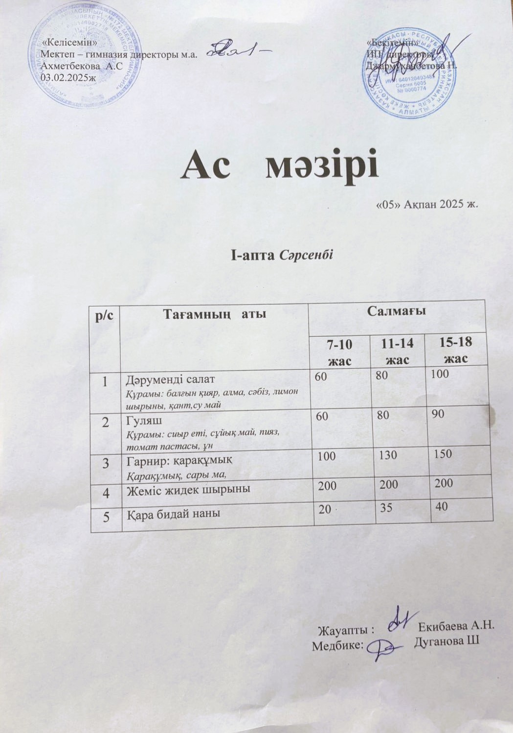 05 ақпан 2025 0 1 2 3 4 5 Ас мәзірі 05.02.2025ж №172 мектеп-гимназиясының тегін ыстық тамақ ішетін оқушыларына арналған ас мәзірі Осы беттің QR-коды:QR-код этой страницы: