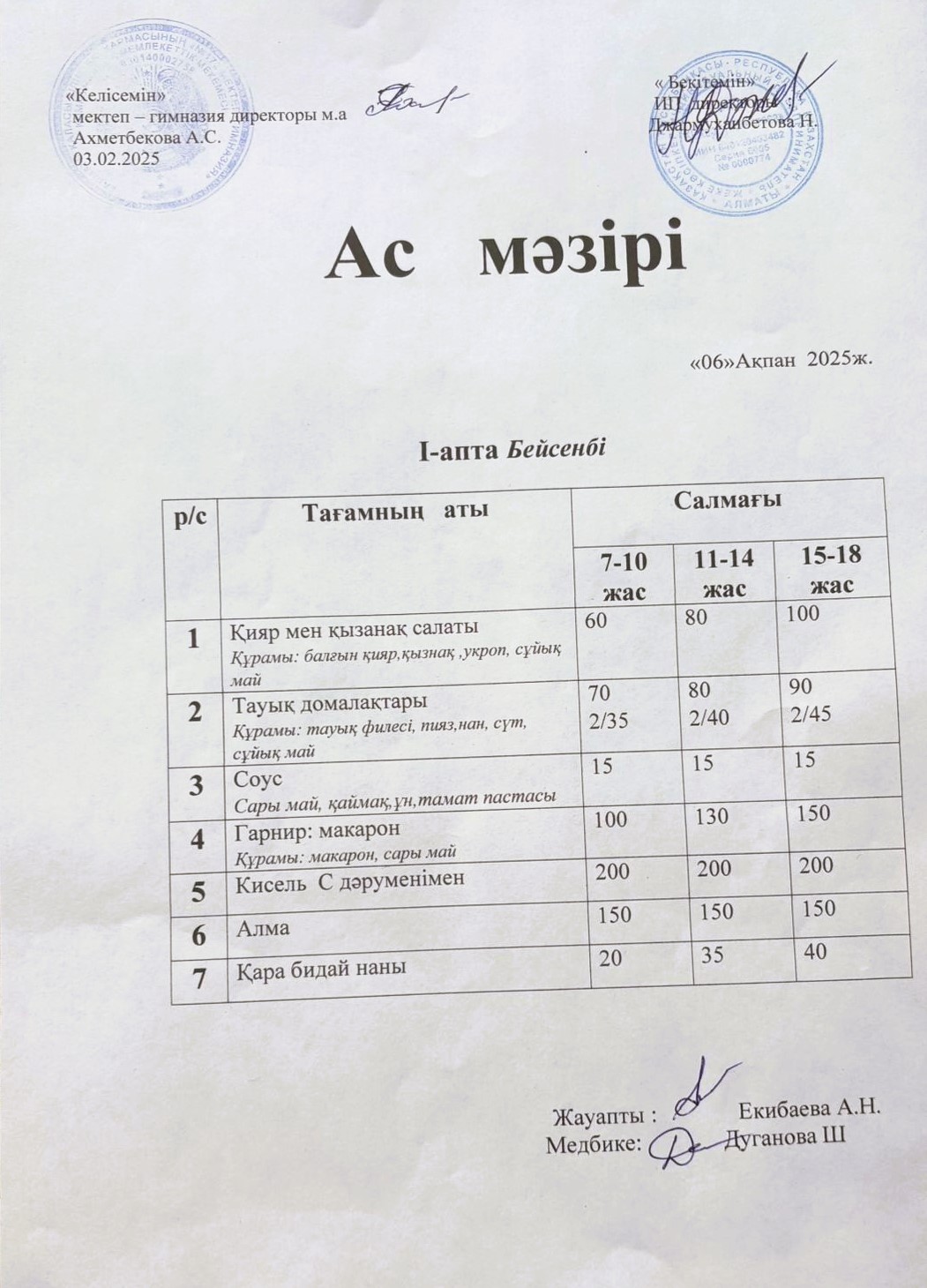 06 ақпан 2025 0 1 2 3 4 5 Ас мәзірі 06.01.2025ж №172 мектеп-гимназиясының тегін ыстық тамақ ішетін оқушыларына арналған ас мәзірі Осы беттің QR-коды:QR-код этой страницы: