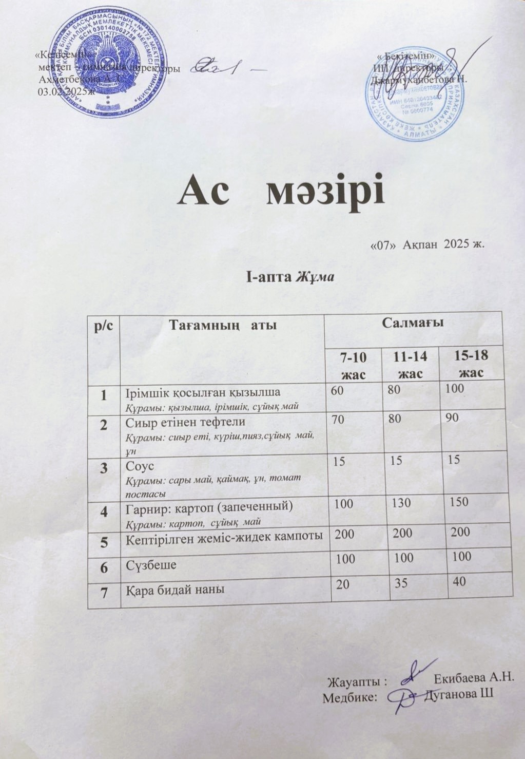 07 ақпан 2025 0 1 2 3 4 5 Ас мәзірі 07.02.2025ж №172 мектеп-гимназиясының тегін ыстық тамақ ішетін оқушыларына арналған ас мәзірі Осы беттің QR-коды:QR-код этой страницы: