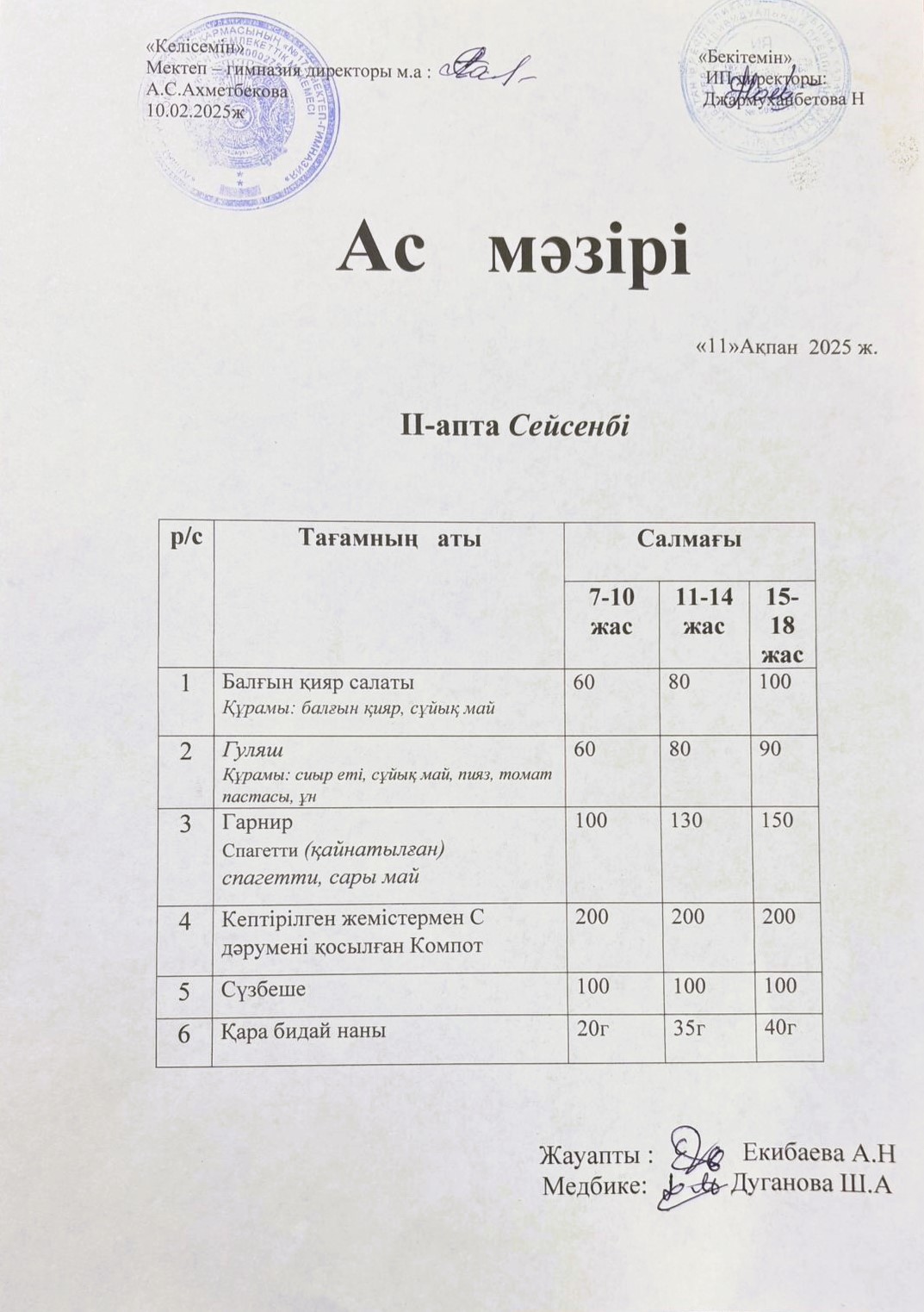 11 ақпан 2025 0 1 2 3 4 5 Ас мәзірі 11.02.2025ж №172 мектеп-гимназиясының тегін ыстық тамақ ішетін оқушыларына арналған ас мәзірі Осы беттің QR-коды:QR-код этой страницы: