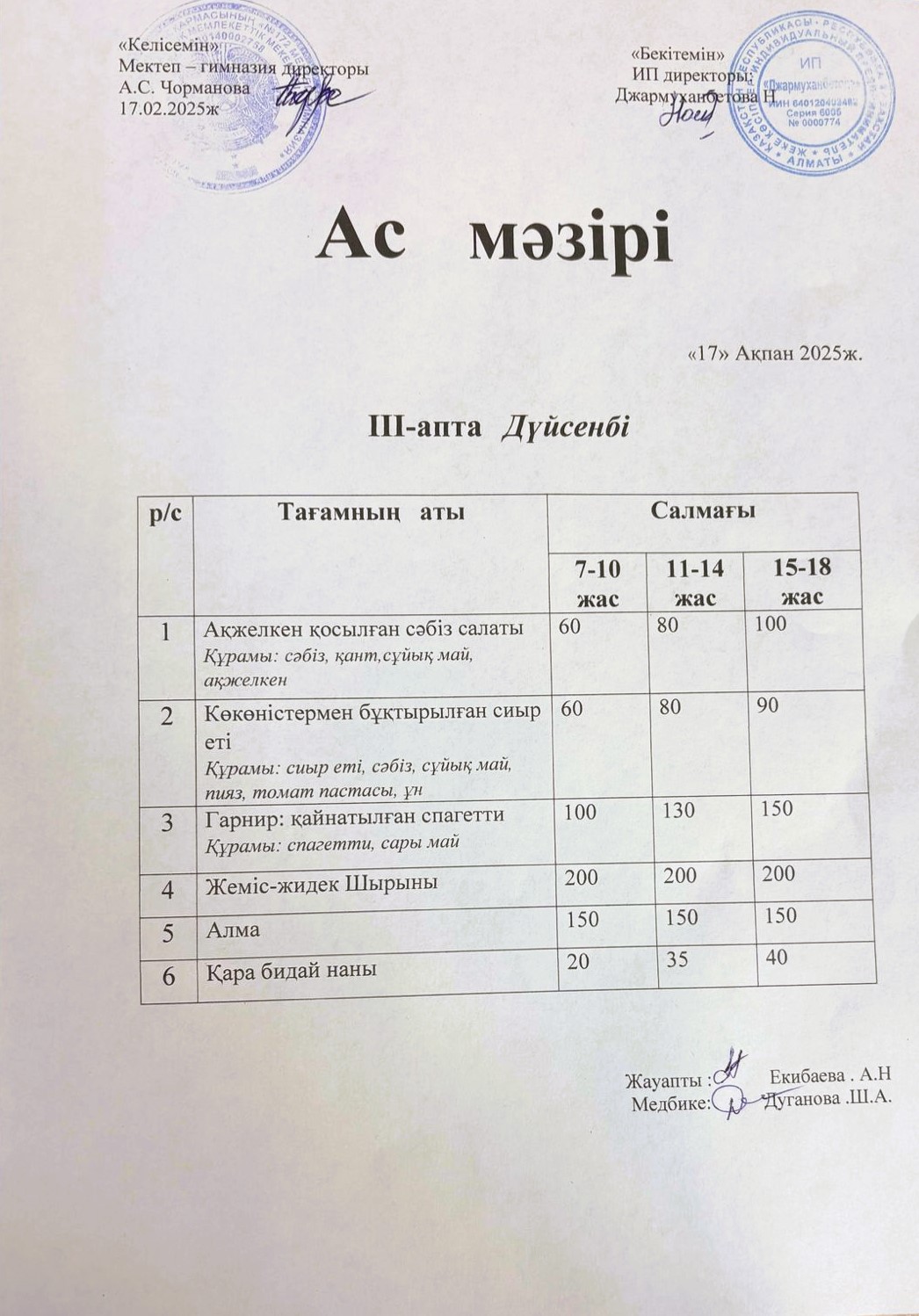 17 ақпан 2025 0 1 2 3 4 5 Ас мәзірі 17.02.2025ж №172 мектеп-гимназиясының тегін ыстық тамақ ішетін оқушыларына арналған ас мәзірі Осы беттің QR-коды:QR-код этой страницы: