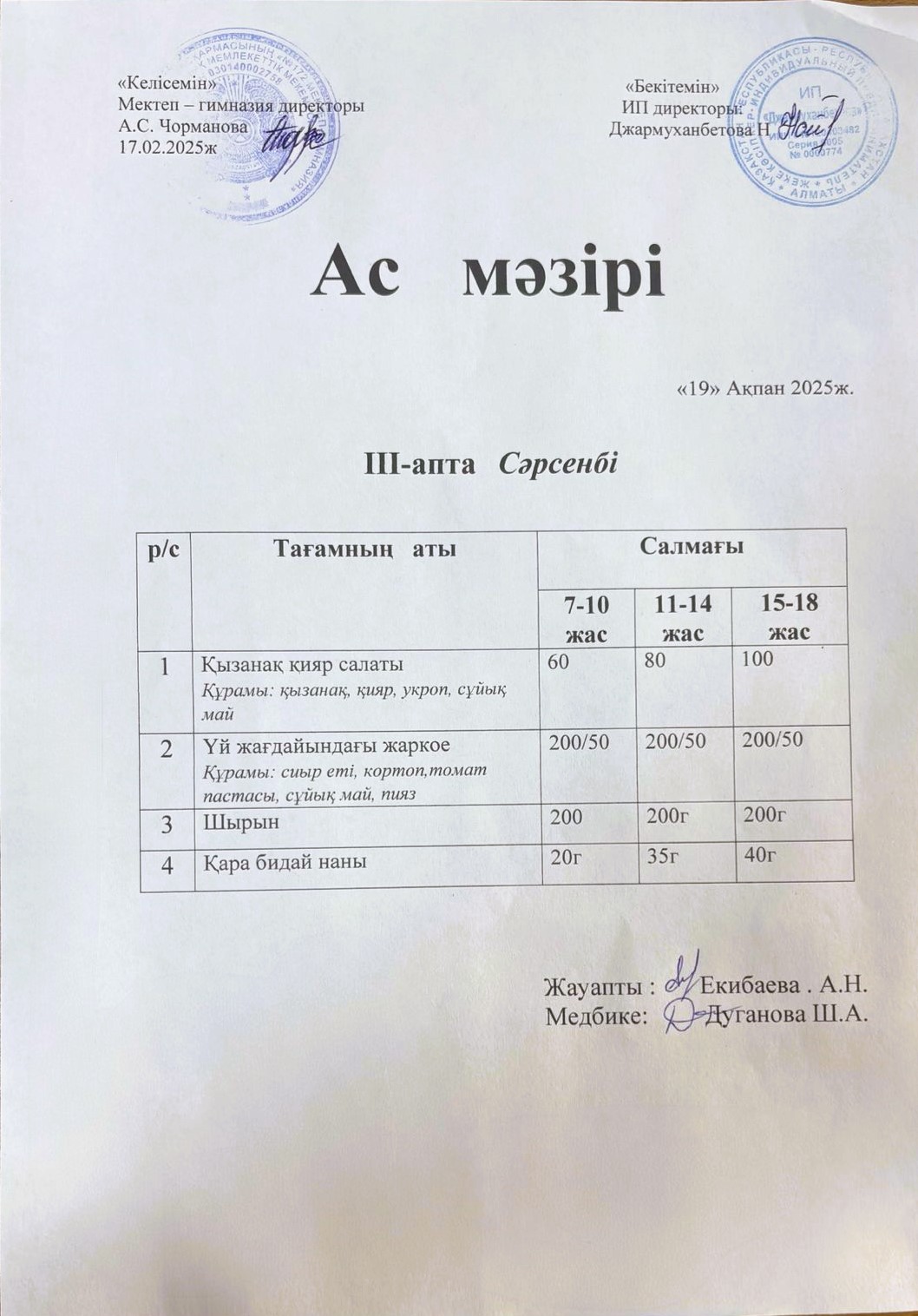 19 ақпан 2025 0 1 2 3 4 5 Ас мәзірі 20.02.2025ж №172 мектеп-гимназиясының тегін ыстық тамақ ішетін оқушыларына арналған ас мәзірі Осы беттің QR-коды:QR-код этой страницы: