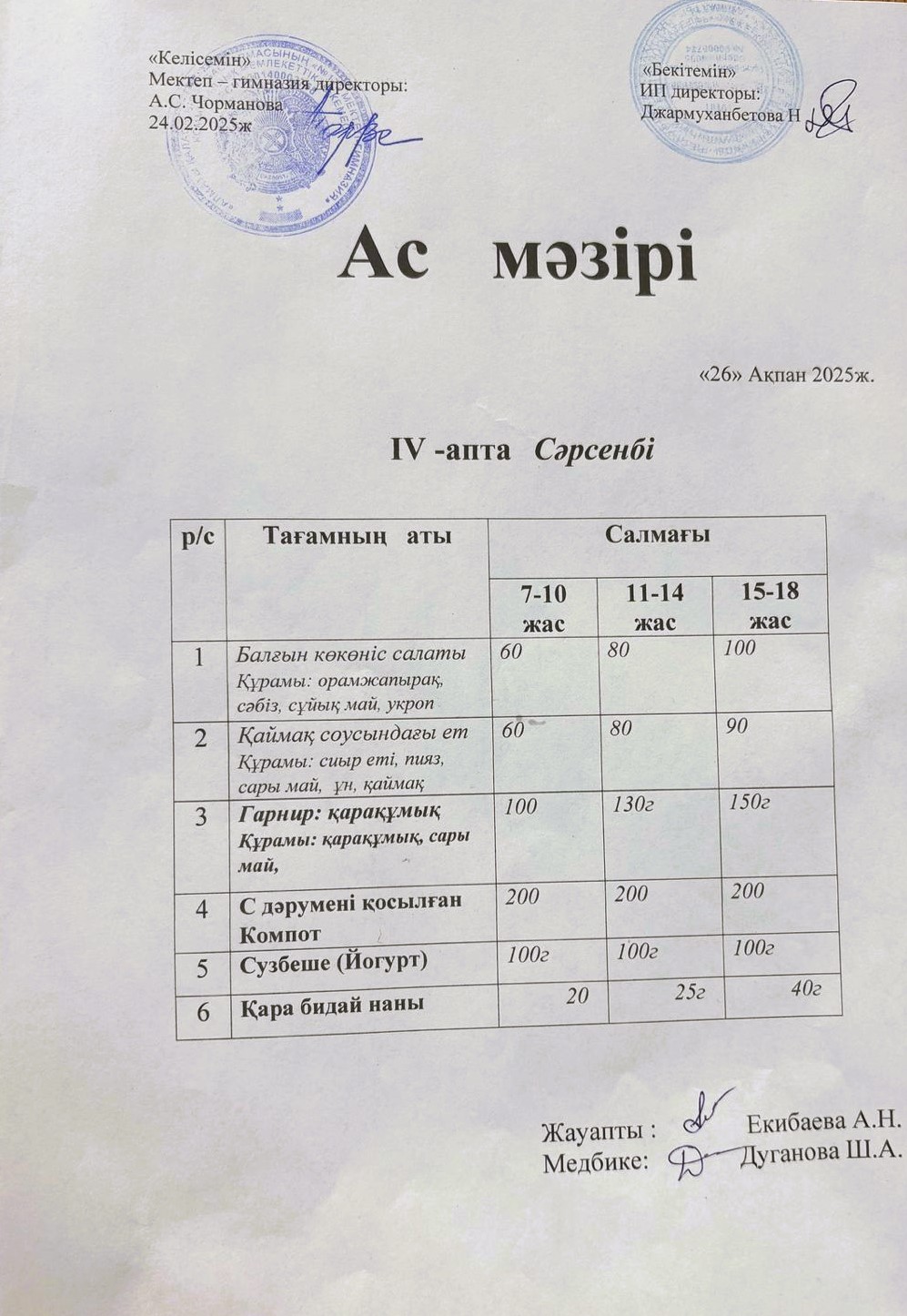 26 ақпан 2025 0 1 2 3 4 5 Ас мәзірі 26.02.2025ж №172 мектеп-гимназиясының тегін ыстық тамақ ішетін оқушыларына арналған ас мәзірі Осы беттің QR-коды:QR-код этой страницы: