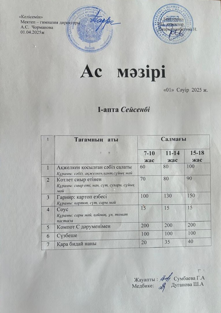 01 сәуір 2025 0 1 2 3 4 5 Ас мәзірі 01.04.2025ж №172 мектеп-гимназиясының тегін ыстық тамақ ішетін оқушыларына арналған ас мәзірі Осы беттің QR-коды:QR-код этой страницы: