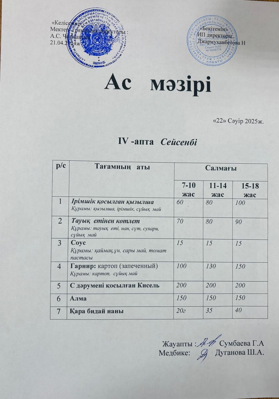 22 сәуір 2025 0 1 2 3 4 5 Ас мәзірі 22.04.2025ж №172 мектеп-гимназиясының тегін ыстық тамақ ішетін оқушыларына арналған ас мәзірі Осы беттің QR-коды:QR-код этой страницы: