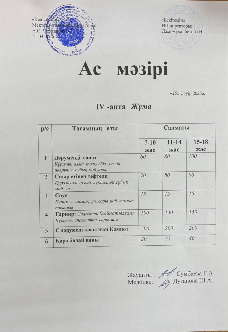 25 сәуір 2025 0 1 2 3 4 5 Ас мәзірі 25.04.2025ж №172 мектеп-гимназиясының тегін ыстық тамақ ішетін оқушыларына арналған ас мәзірі Осы беттің QR-коды:QR-код этой страницы: