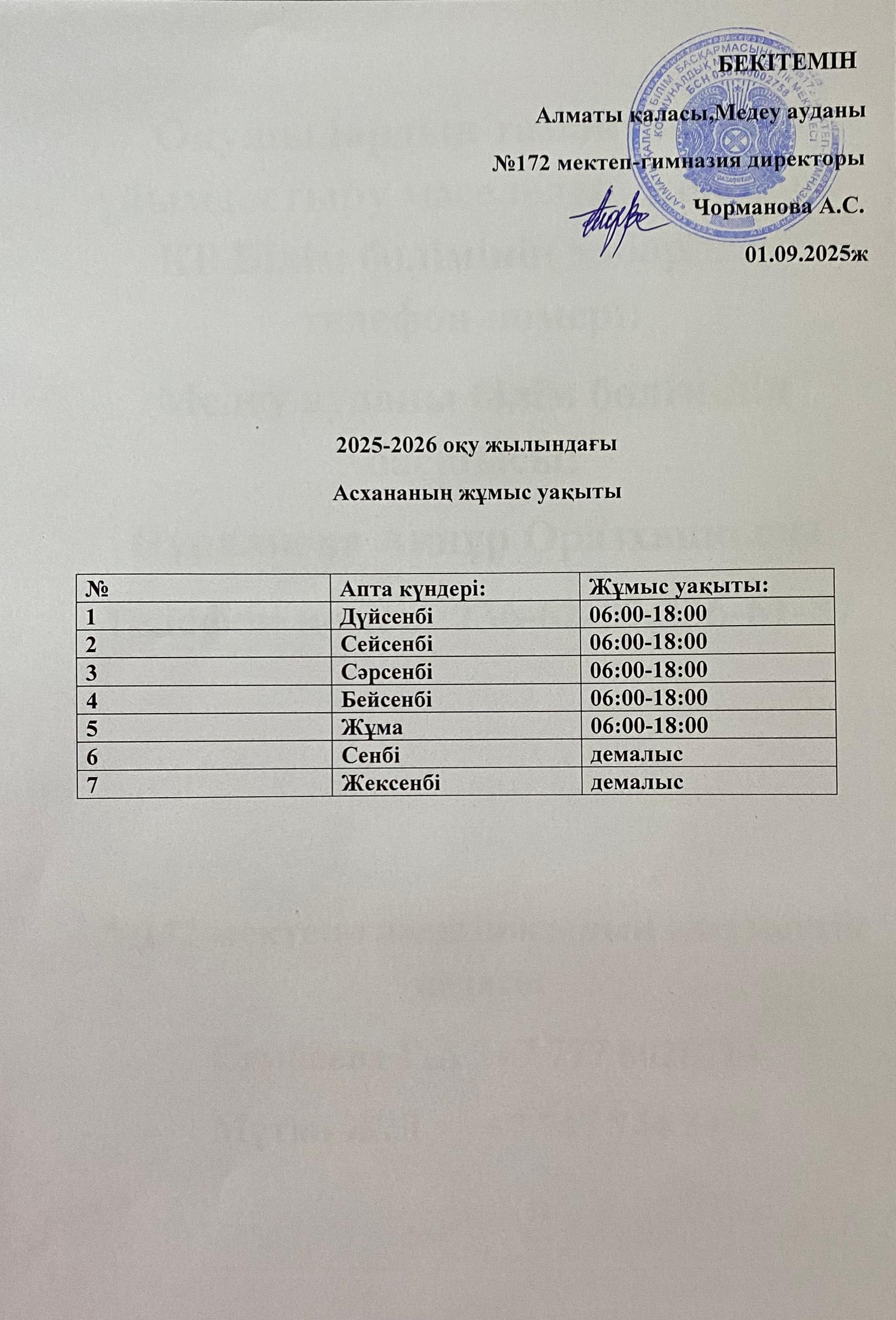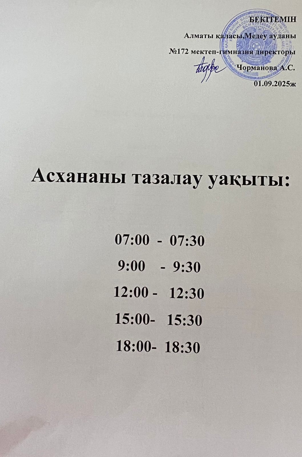 №172 мектеп-гимназия Спорт залының жұмыс кестесі