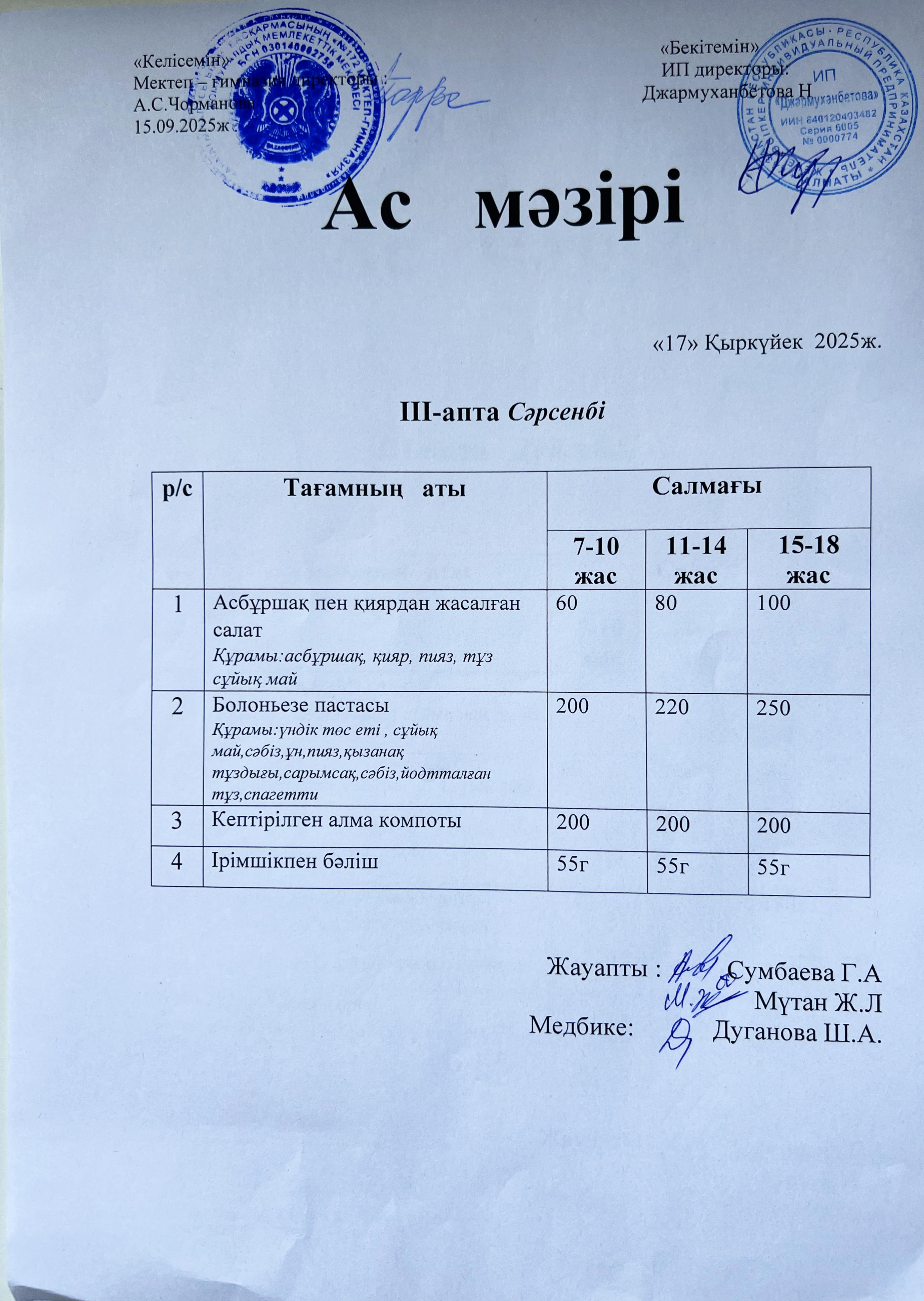 17 қыркүйек 2025 0 1 2 3 4 5 Ас мәзірі 17.09.2025ж №172 мектеп-гимназиясының тегін ыстық тамақ ішетін оқушыларына арналған ас мәзірі Осы беттің QR-коды:QR-код этой страницы: