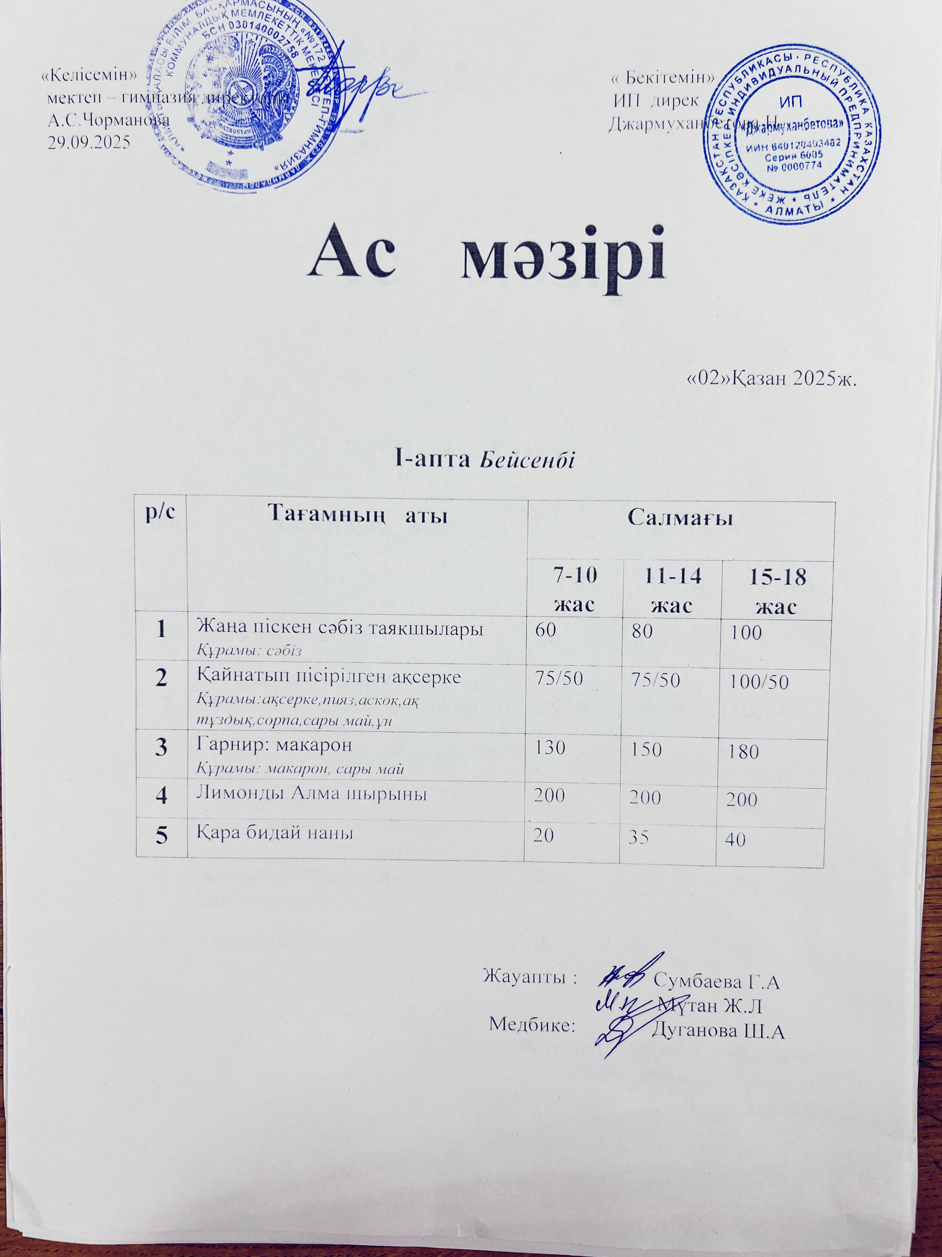 Ас мәзірі Қыс-Көктем 2024-2025ж