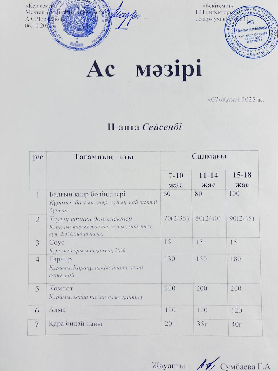Ас мәзірі 11.09.2025ж
