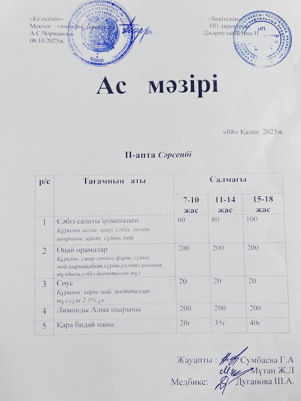 Ас мәзірі 08.09.2025ж