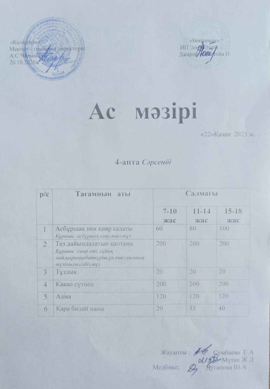 Ас мәзірі Қыс-Көктем 2024-2025ж