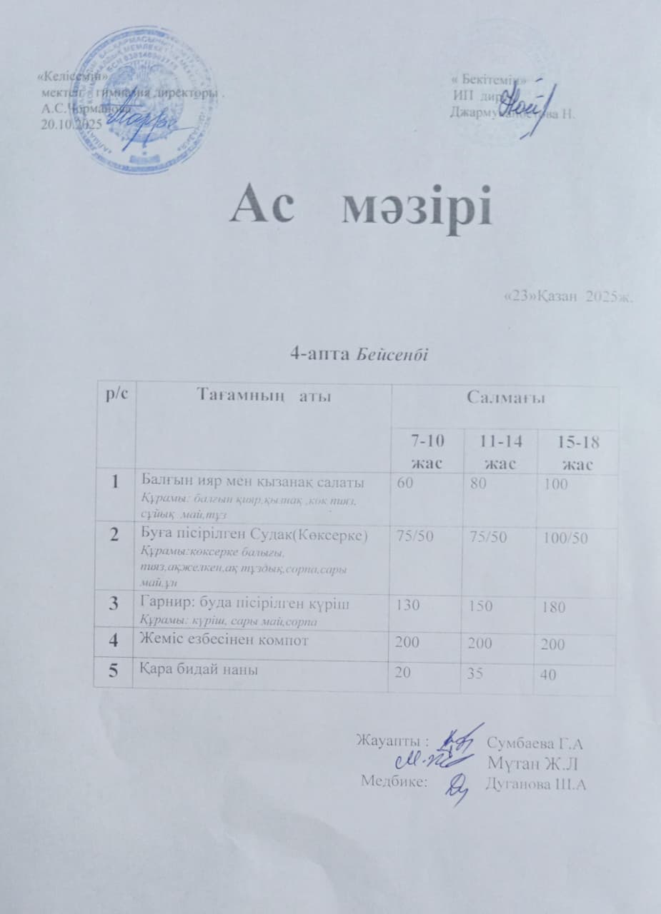 Ас мәзірі Қыс-Көктем 2024-2025ж