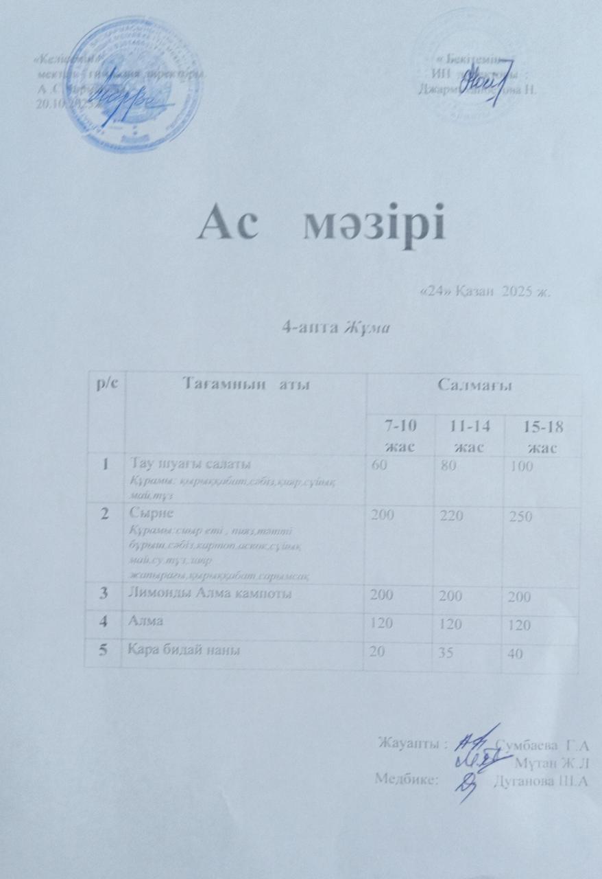 Ас мәзірі Қыс-Көктем 2024-2025ж